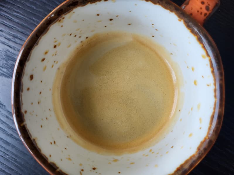 На одинарный эспрессо мы взяли маленький фильтр, в который входит около 10 г кофе, и напиток порадовал нас вкусом и ароматом. На приготовление чашки ушло 18 секунд, а температура приготовленного напитка была 65 °C. Пенка на эспрессо была вполне достойной.