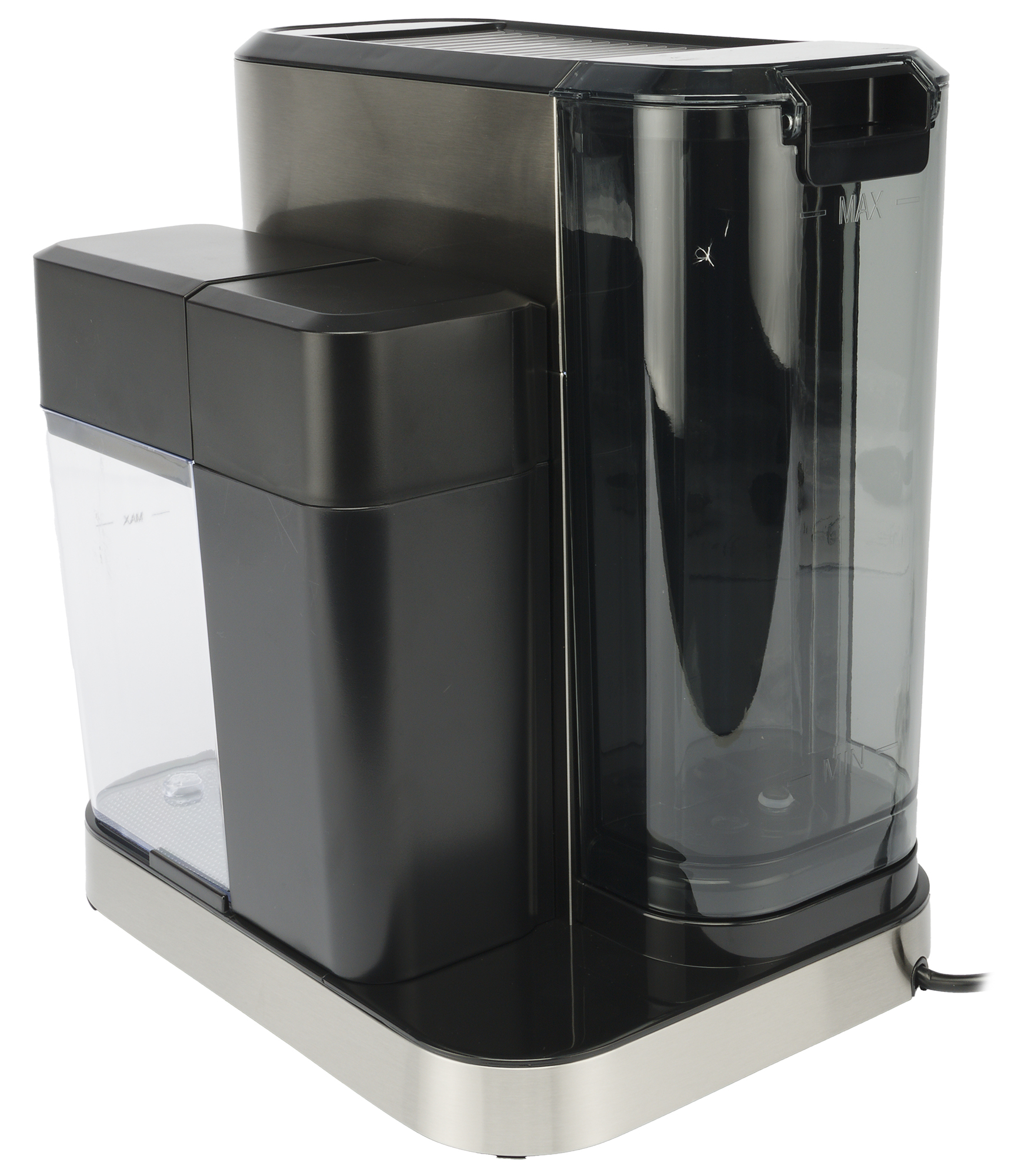 Резервуар для воды емкостью 1 л сделан из прозрачного затемненного пластика и имеет отметки Min и Max, соответствующие минимальному и максимально допустимому уровню воды.