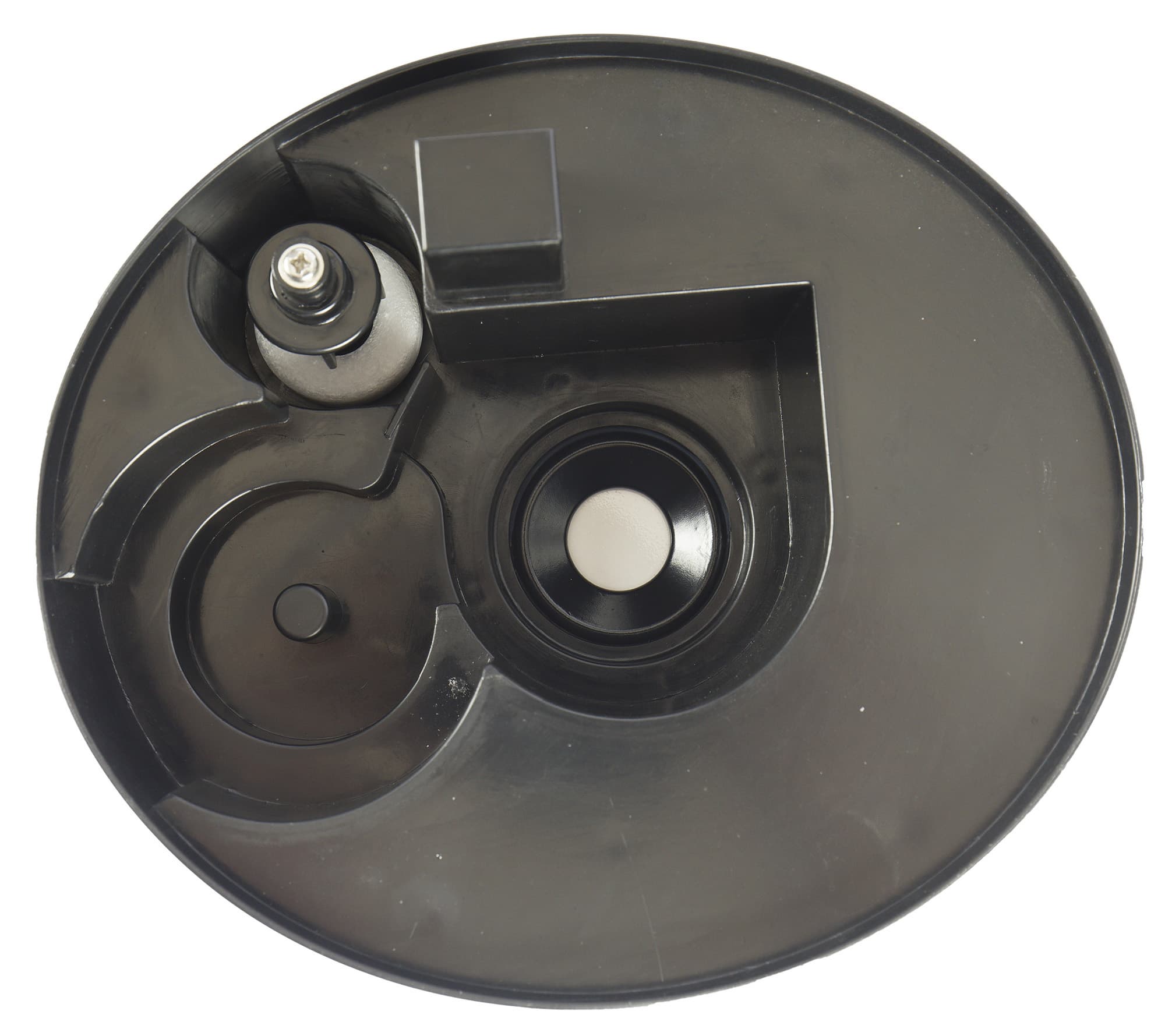 В центре рабочей камеры увлажнителя располагается пьезоизлучатель, превращающий воду в холодный пар. Рядом с ним — датчик уровня и ответная часть пружинного клапана, дозирующего жидкость из бака.