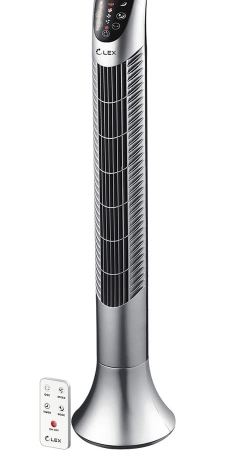 Колонный вентилятор Lex LXFC 8362 — компактный, обладает неплохой производительностью и невысоким уровнем шума. Как и у большинства традиционных напольных устройств, у этой модели три скорости и возможность автоматического поворота в пределах 90 градусов.