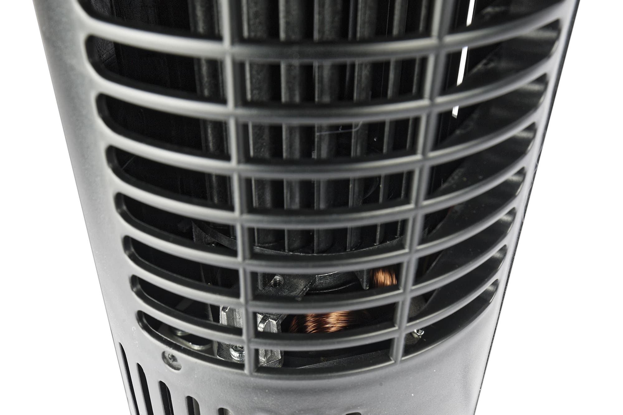 В нижней части корпуса расположен электромотор, вращающий пластиковую турбину. Оба этих элемента видны через вентиляционные отверстия.