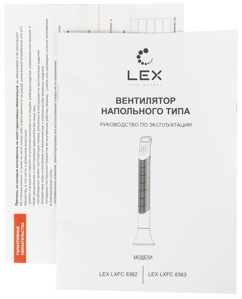 Lex LXFC 8362 представляет собой колонну, оформленную в серебристо-черной гамме. Большую часть корпуса занимает вертикальная турбина, направляющая поток воздуха сквозь решетку на передней части устройства.
