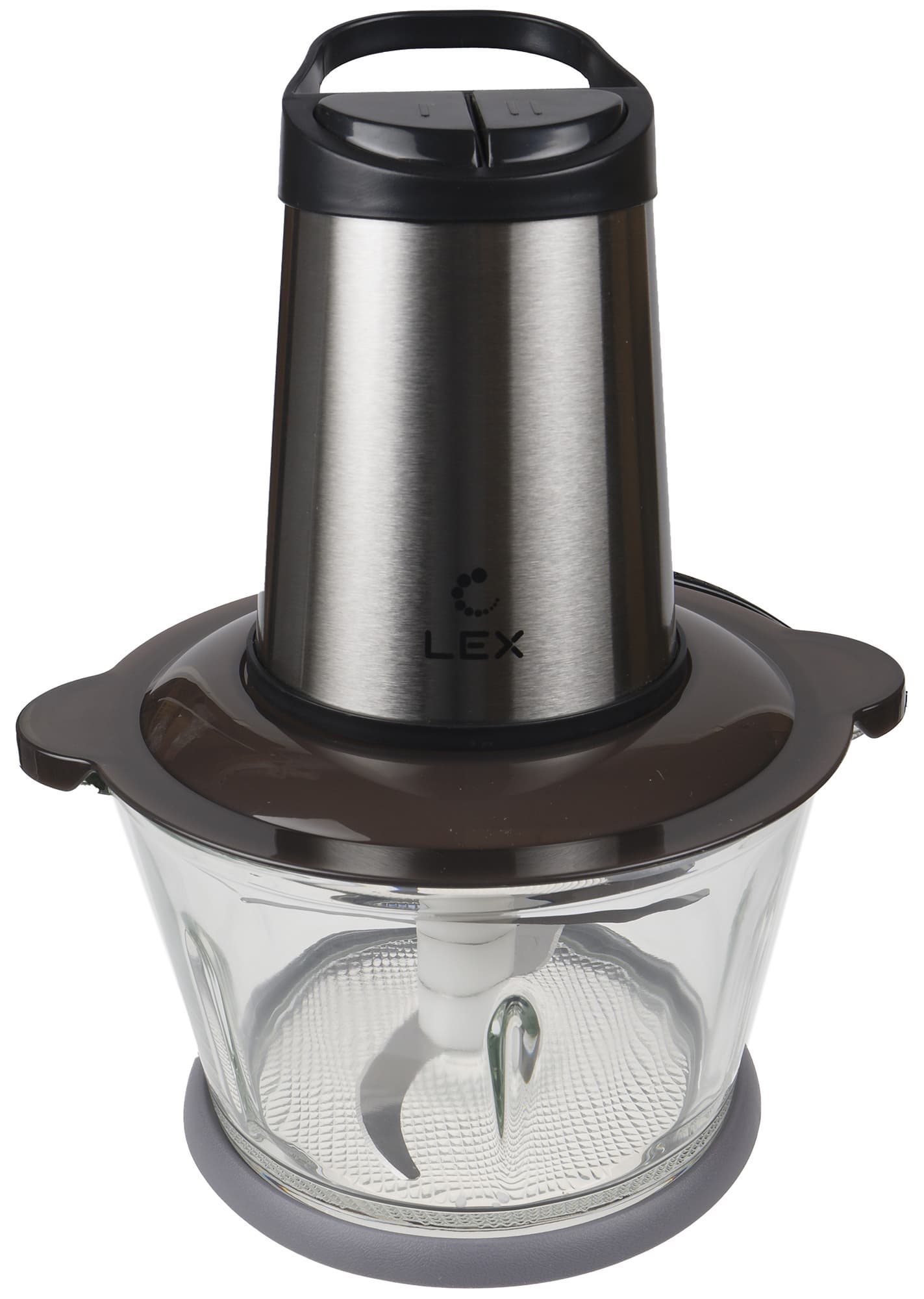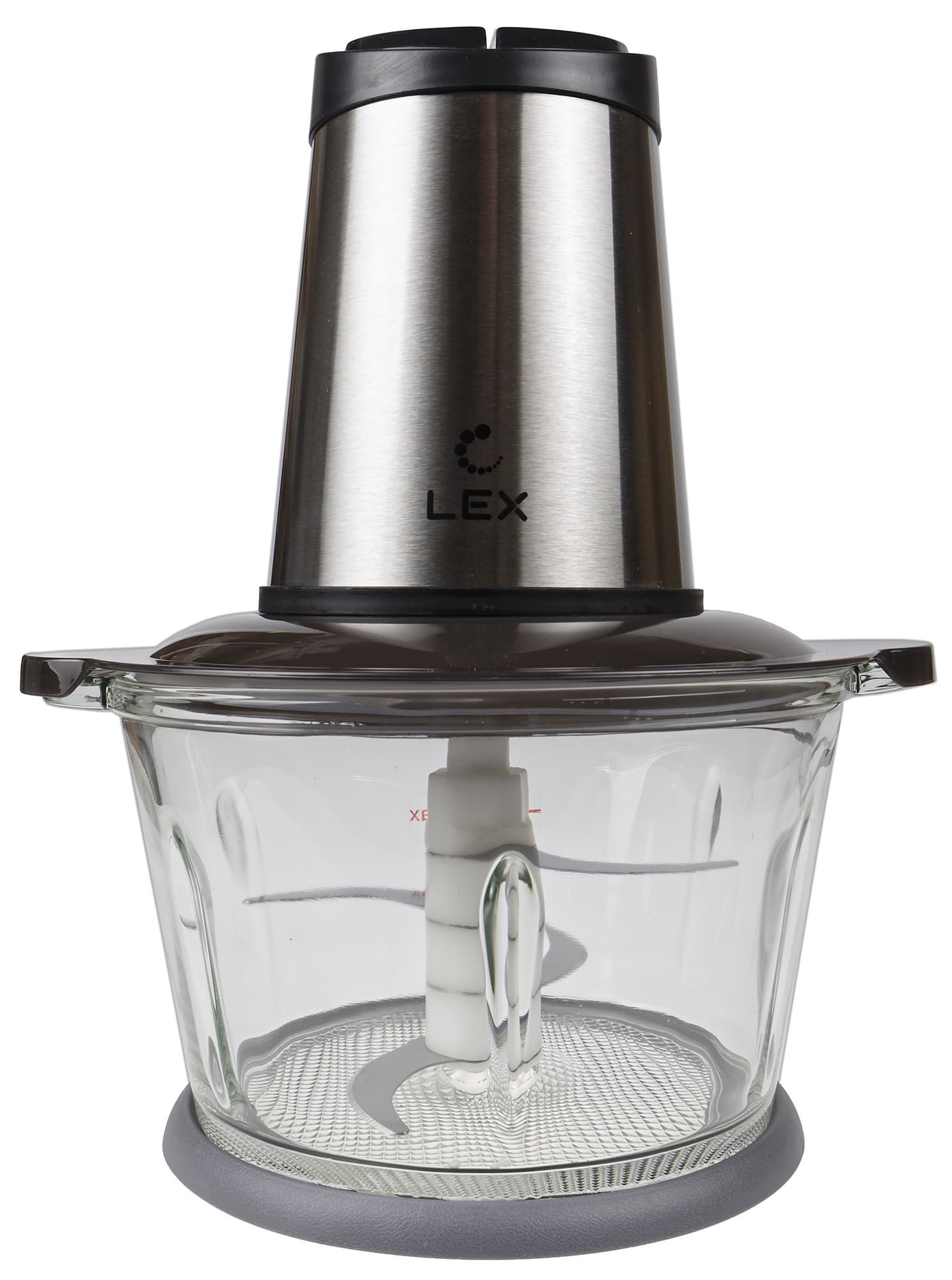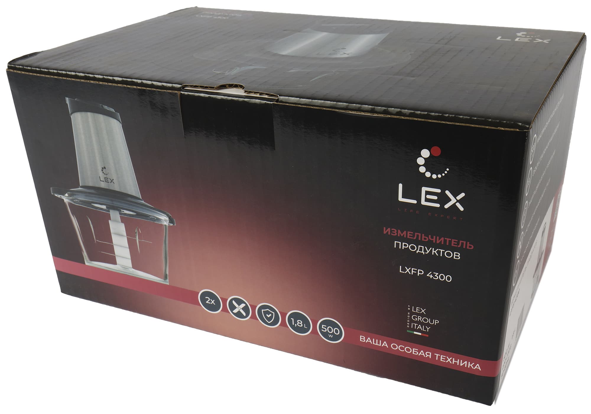 Lex LXFP 4300 выглядит достаточно солидно: большой моторный блок стального с черным цвета и чаша из толстого стекла объемом 1,8 л.