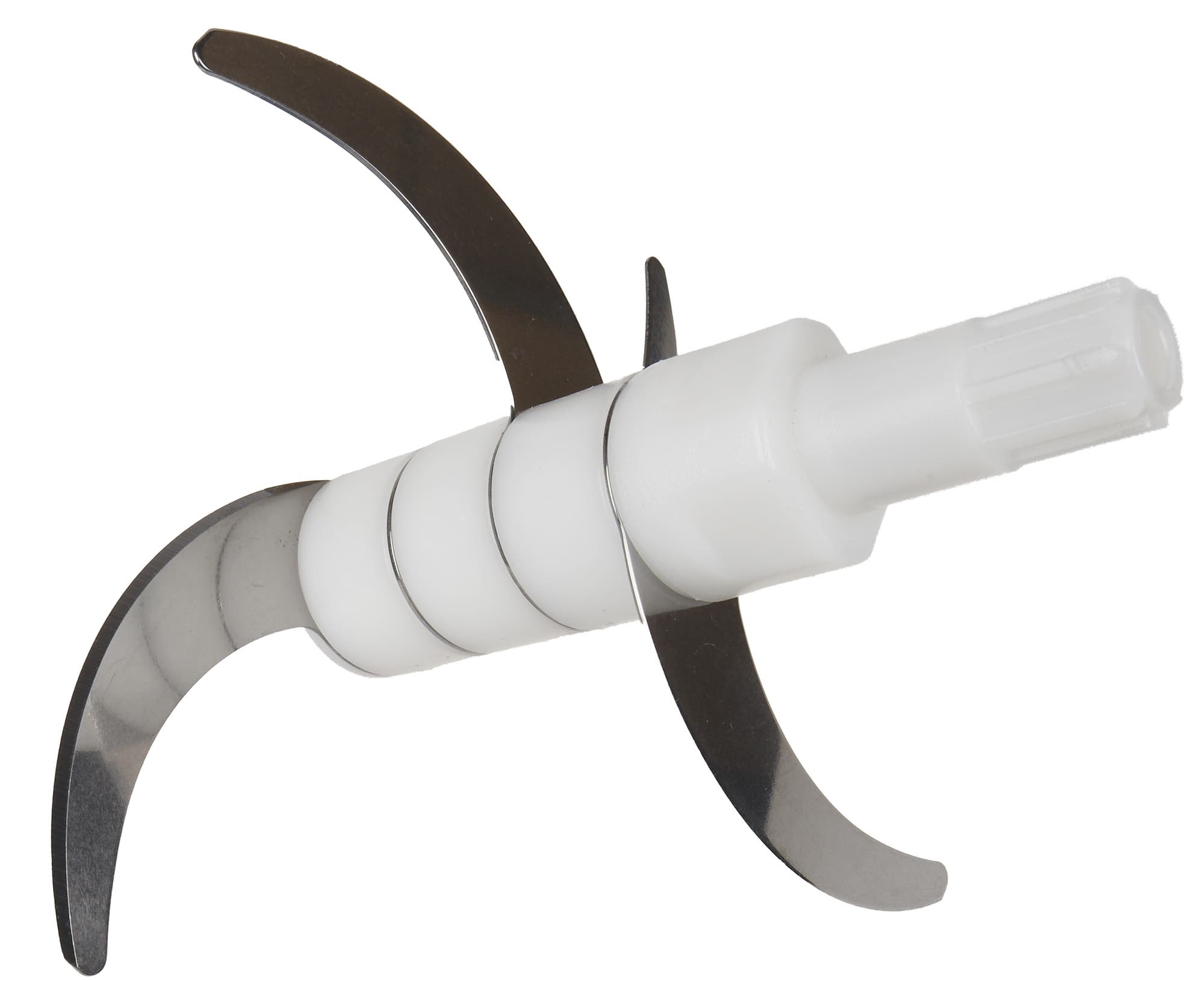 Блок ножей неразборный, он устанавливается на штырь чаши, а сверху к нему крепится моторный отсек. Острые ножи изготовлены из нержавеющей стали. Каждый нож находится на своем собственном уровне относительно днища чаши, таким образом, весь блок обеспечивает четырехуровневое измельчение. По идее, это должно благоприятно сказаться на равномерности конечного продукта и отсутствии «увернувшихся от ножа» кусочков.