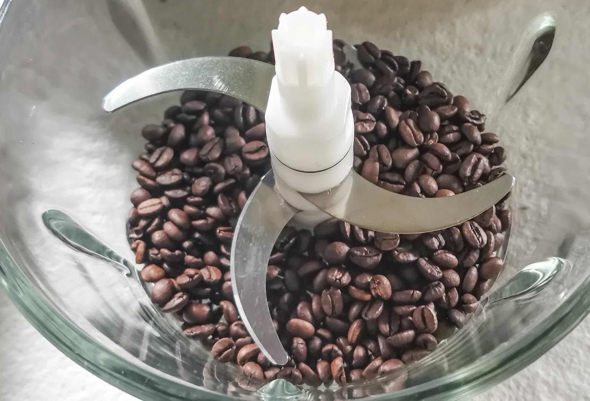 Так как на сайте производителя в рекламе прибора указано, что он измельчает кофейные зерна, мы решили посмотреть качество помола, выдаваемое измельчителем. В емкость засыпали зерна кофе средней обжарки.