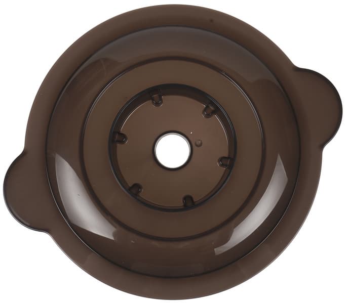 Крышка чаши пластмассовая, изнутри имеет тонкий силиконовый уплотнитель. Крышка надевается непосредственно на стеклянную чашу с установленным блоком ножей. За счет материала имеет легкий перекос и надевается неплотно, но при установке моторного отсека выравнивается.