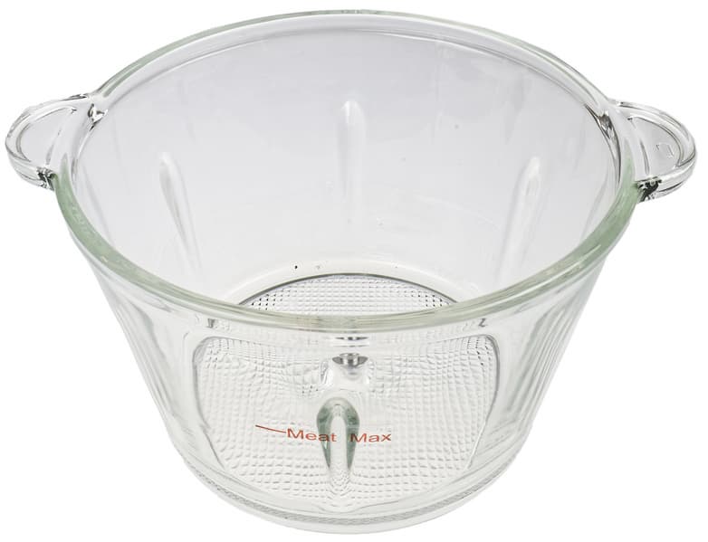 Стеклянная толстостенная чаша имеет литые ручки. На дне вставлен штырь для блока ножей.
