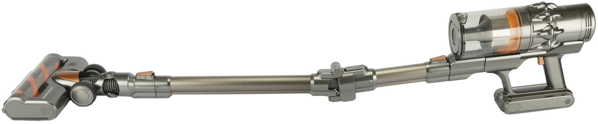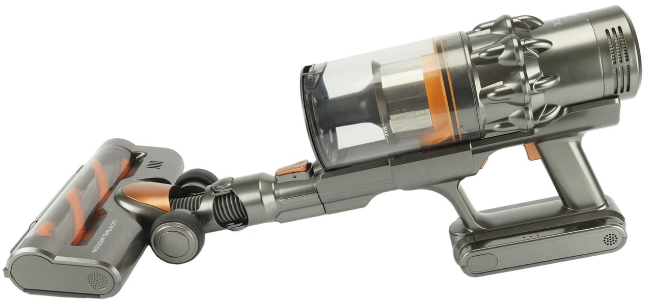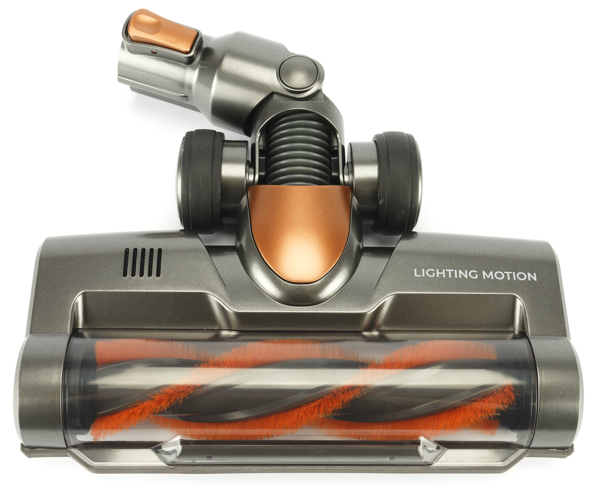 Шарнирная удлинительная трубка облегчает уборку под мебелью и в труднодоступных местах, а наличие подсветки рабочей зоны не позволит пропустить малозаметный мусор. Производитель позаботился и об удобном хранении прибора на вертикальной стойке.