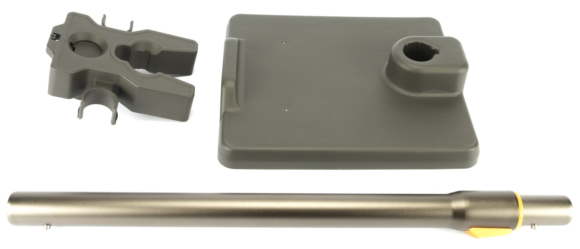 В комплект пылесоса входит подставка для хранения, поставляемая в разобранном виде: основание, телескопическая стойка и крепление для устройства.