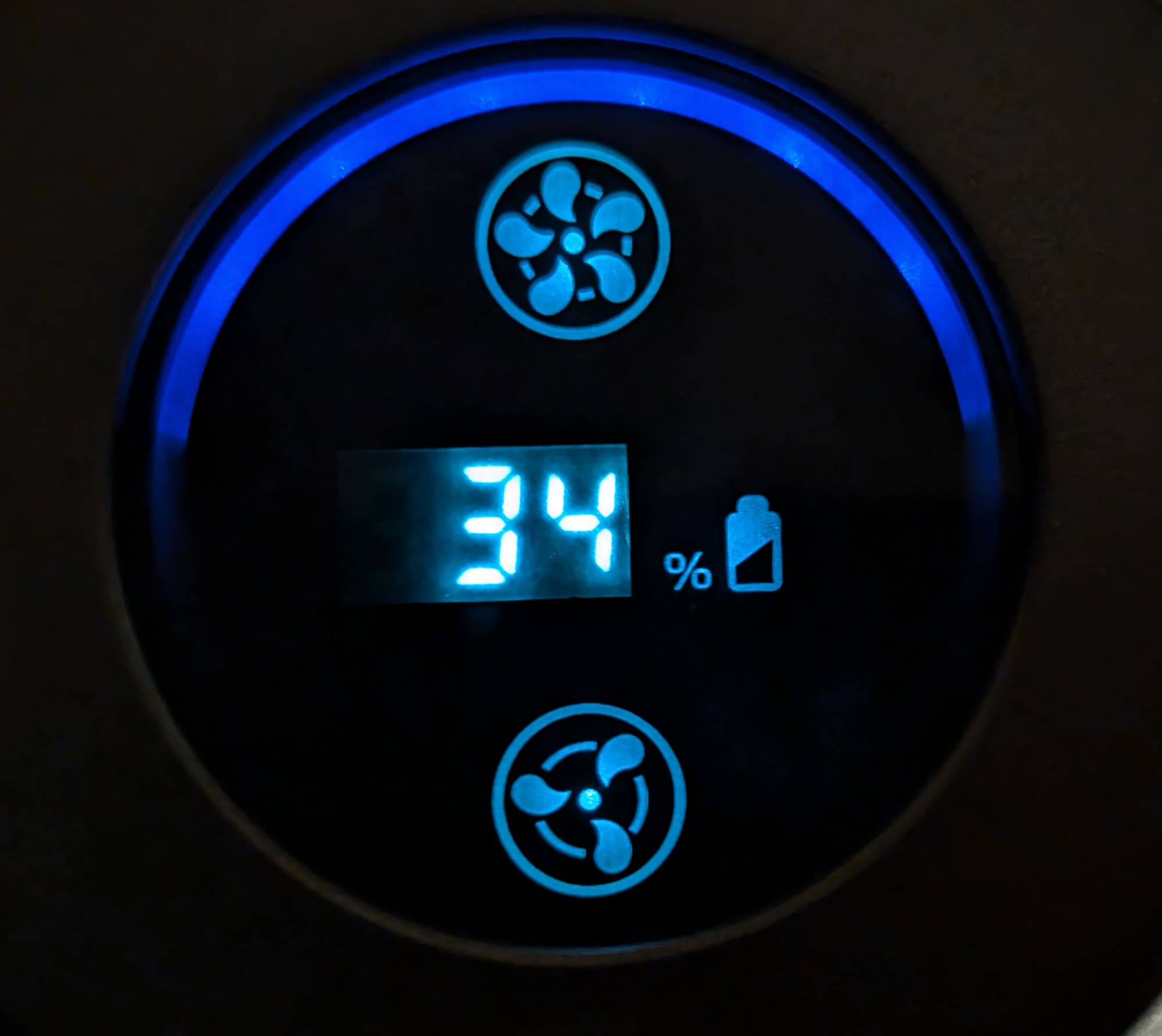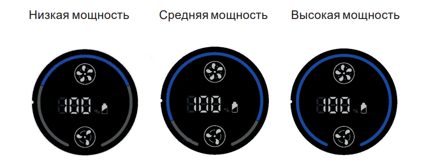 В центре круглой панели расположен цифровой светодиодный индикатор, отображающий текущий уровень заряда аккумулятора.