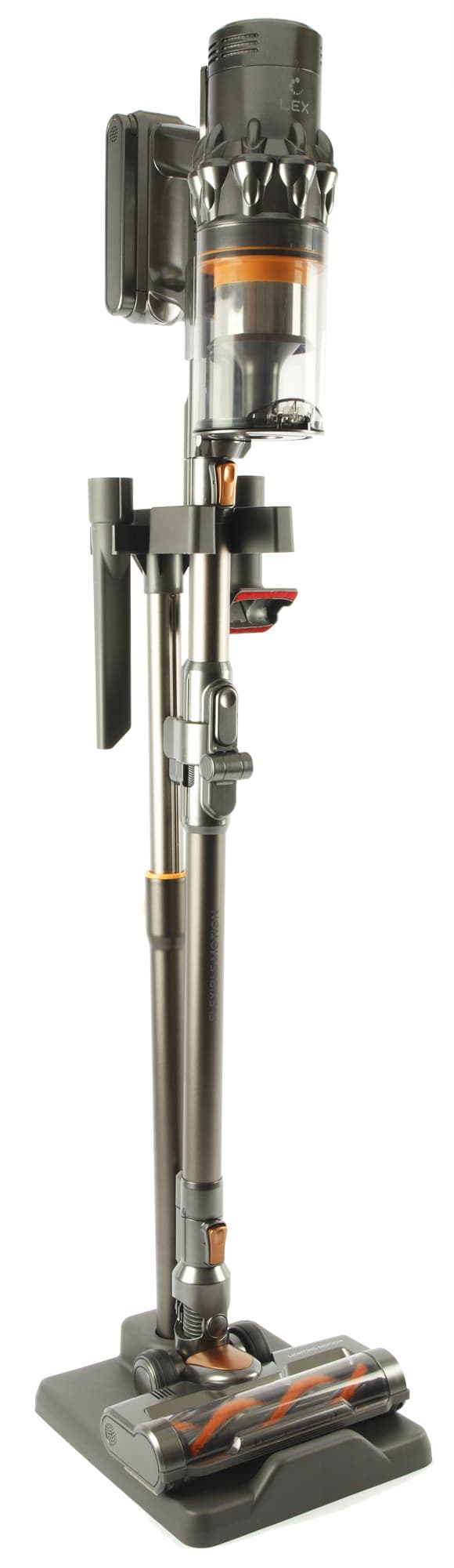 В держателе можно разместить моторный блок с удлинительной трубкой и напольной электрощеткой, а снизу закрепить неэлектрифицированные насадки.