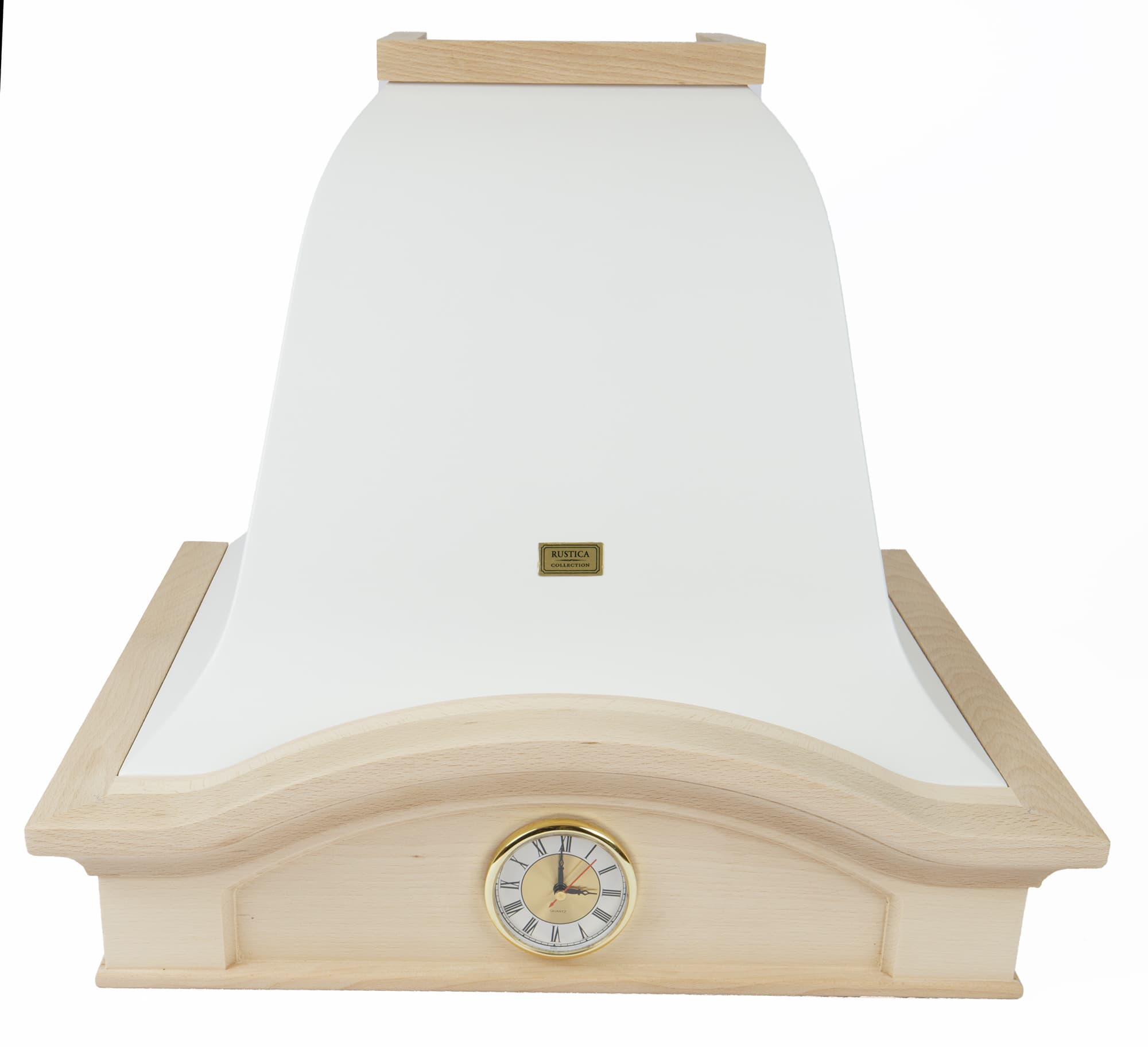 На передней панели выделяется циферблат часов. Римские цифры и фигурные стрелки неплохо гармонируют с общим стилем и будут довольно полезны в кухне — там вечно негде время узнать.