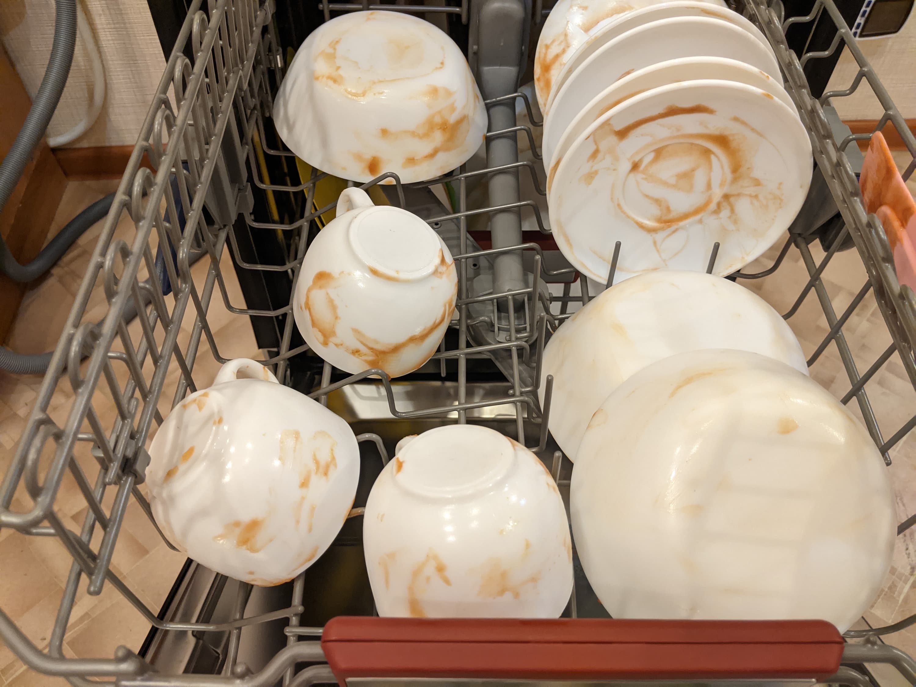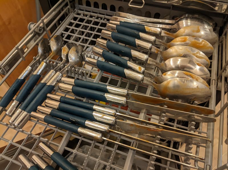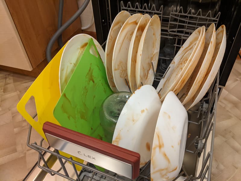 Через положенное время открыли посудомойку и убедились, что засохший кетчуп отмыт идеально.