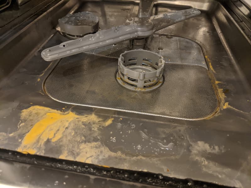 Производитель рекомендует держать дверцу машины приоткрытой некоторое время после окончания работы, чтобы внутри не было сырости и неприятных запахов. Фильтрующий блок ПММ надо очищать от остатков еды после каждого использования и не реже раза в неделю промывать более тщательно. Грубый фильтр и микрофильтр при необходимости очищают от налипшей грязи щеткой .