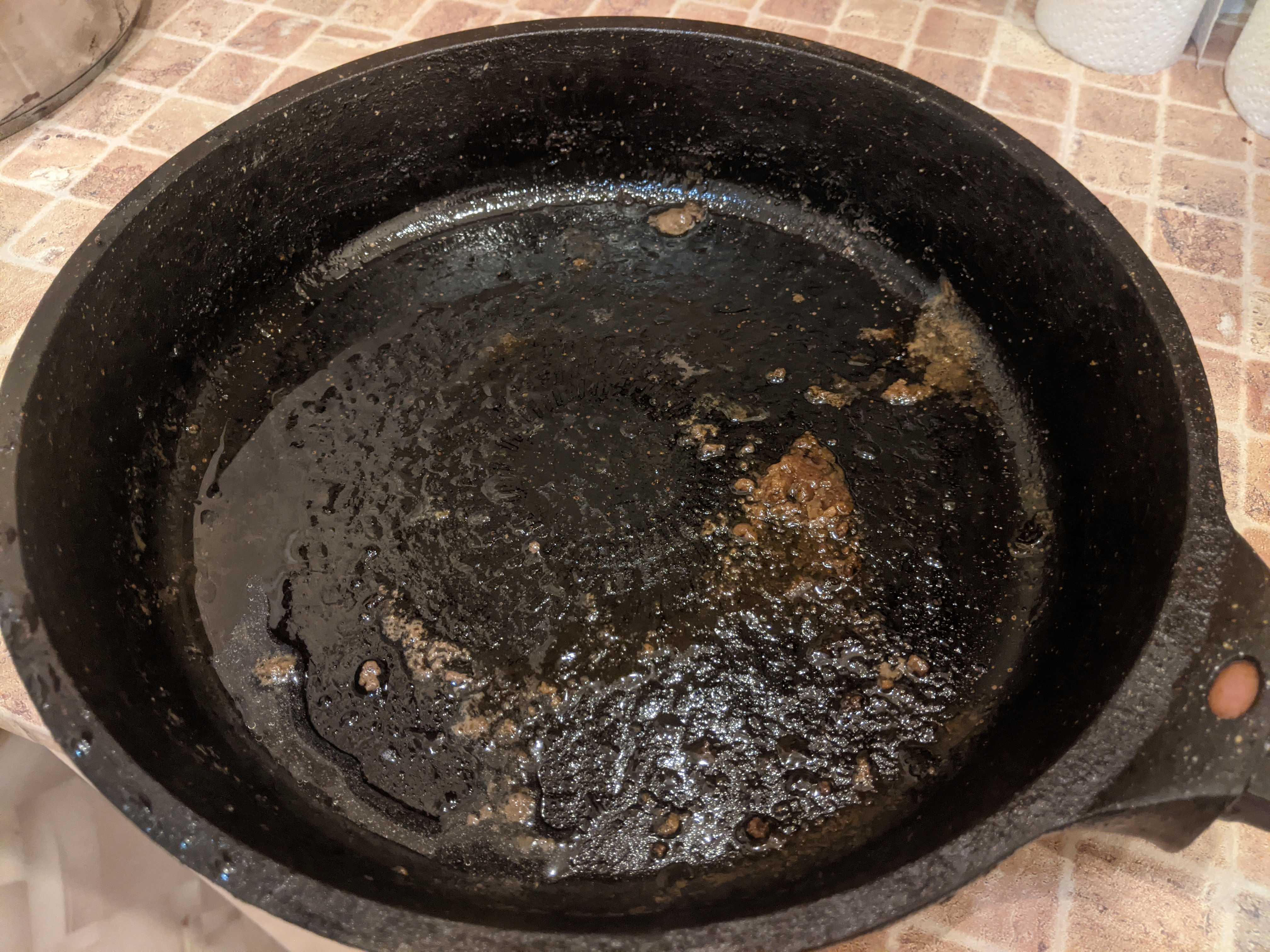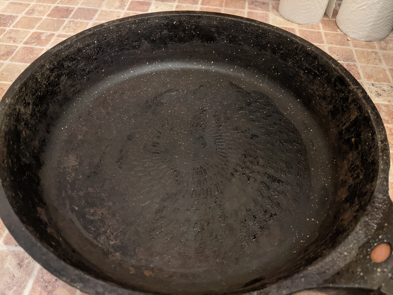Сковороду, на которой жарили котлеты, мы оставили на сутки для высыхания загрязнений. Жир и остатки пищи со сковороды не удаляли, предварительного ополаскивания под краном, обязательного в подобных случаях, не делали.