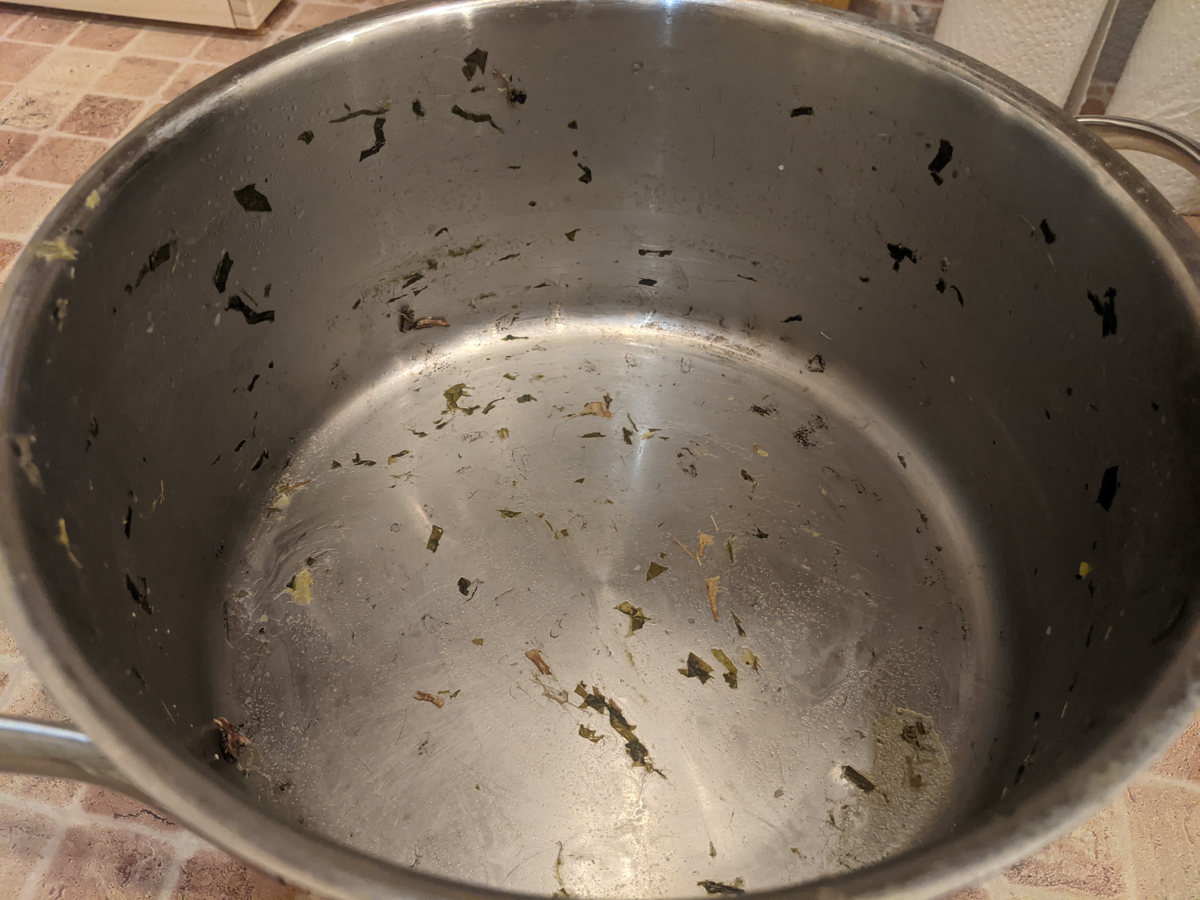 Вторым номером в этом тесте выступала кастрюля из-под жирного мясного супа с большим количеством зелени. Она также не ополаскивалась перед мытьем и сохла чуть более суток.
