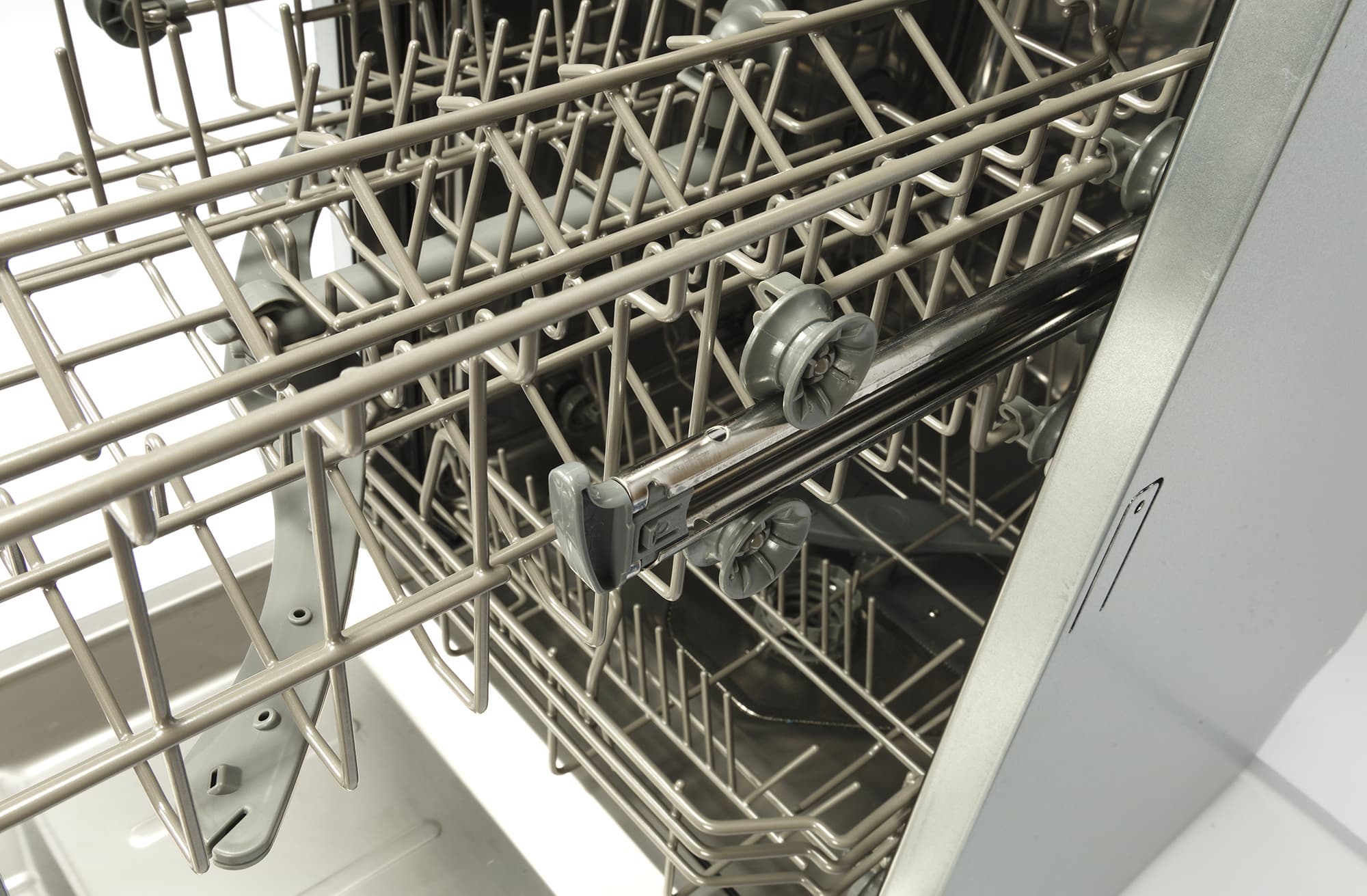 Модель достаточно вместительна для своей категории. Корзины неплохо продуманы с точки зрения эргономики и позволяют размещать внутри посуду самых разных размеров. Так как орошение происходит с помощью трех импеллеров, машина тщательно промывает все предметы вне зависимости от их расположения.
