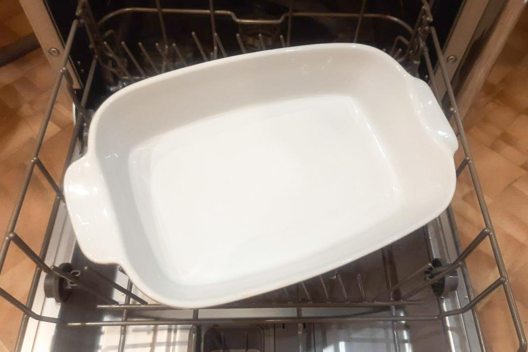 В следующий раз запачкав форму точно таким же образом, мы запустили режим с добавлением опции «Экстра-мойка», увеличившей цикл на 15 минут. Вот такого результата нам удалось добиться. Форма отмылась идеально, и качество сушки нас снова порадовало — следов влаги в емкости мы не обнаружили.