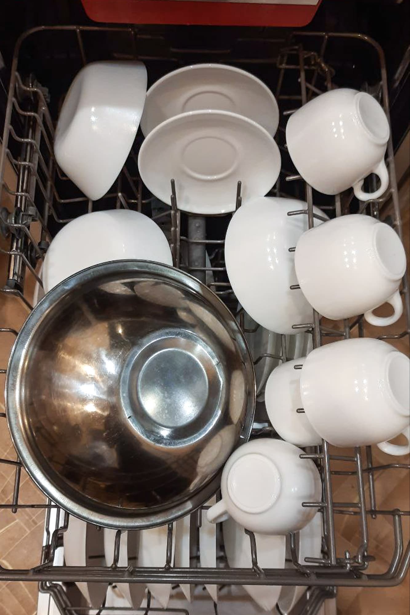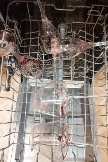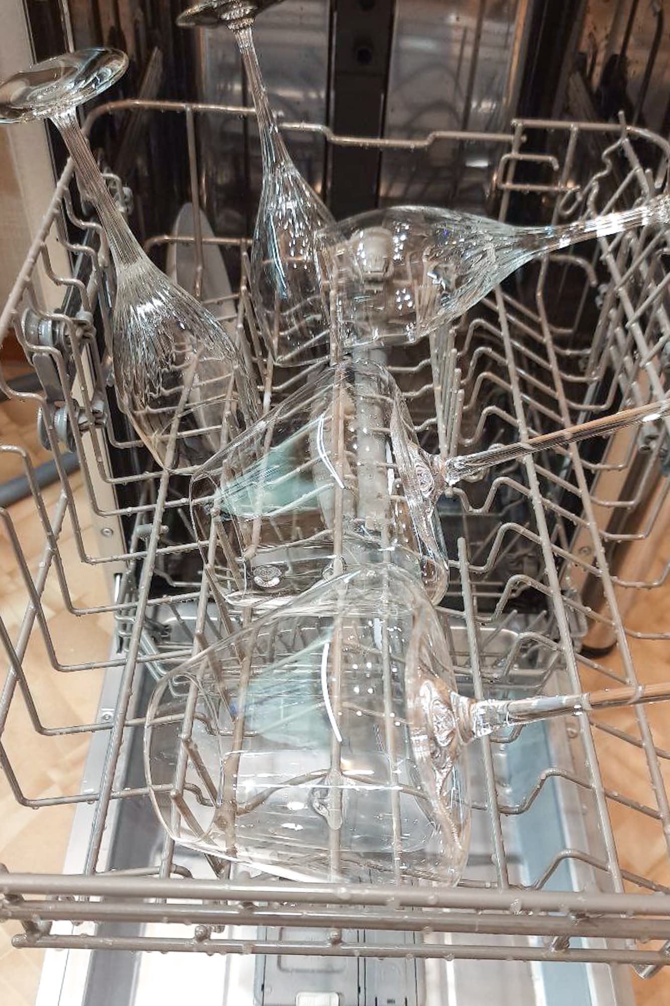 Почти вся влага при сушке испарилась, исключение составили лишь внутренние стенки крупных бокалов, что естественно, учитывая их расположение в корзине.
