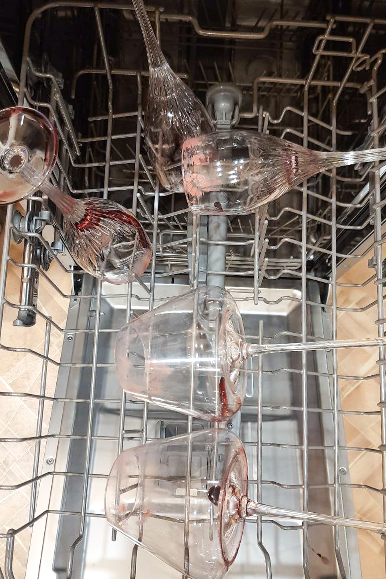 Для проверки режима «Стекло» мы измазали бокалы жирной губной помадой и дополнительно испачкали дешевым красным вином. Чтобы усложнить задачу, оставили всё сохнуть, как обычно, на сутки.