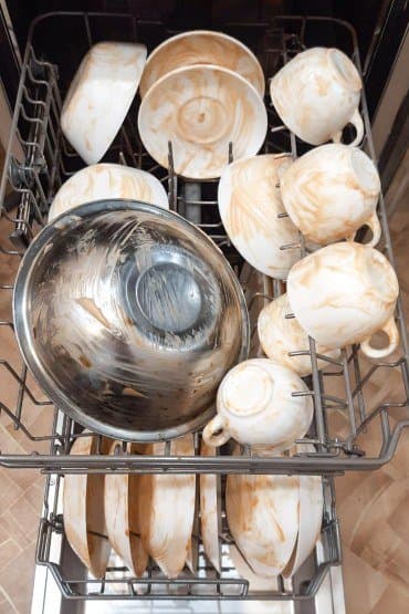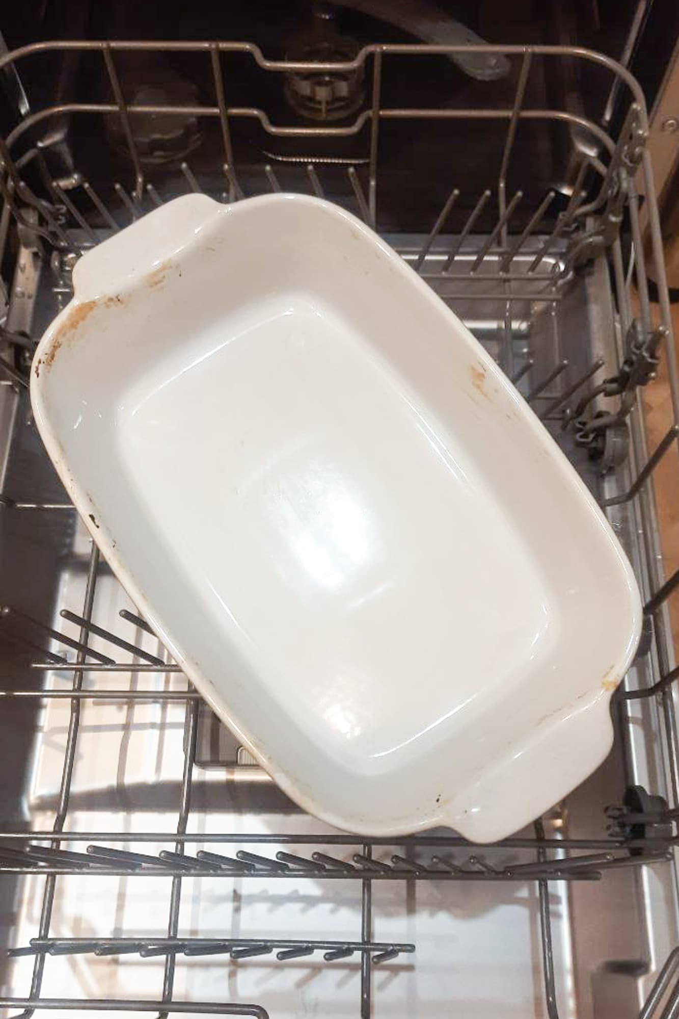 Без предварительного ополаскивания и замачивания поместили форму в нижнюю корзину, уложив вверх дном, и включили программу интенсивной мойки.