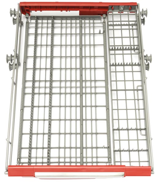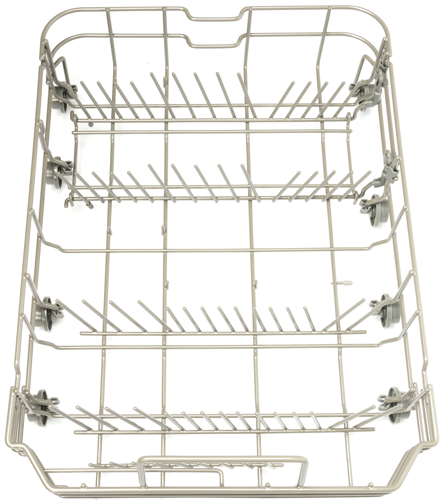 Дальняя пара держателей нижней корзины складывается, за счет чего во втором ряду можно размещать крупные кастрюли, сковородки и большие миски.