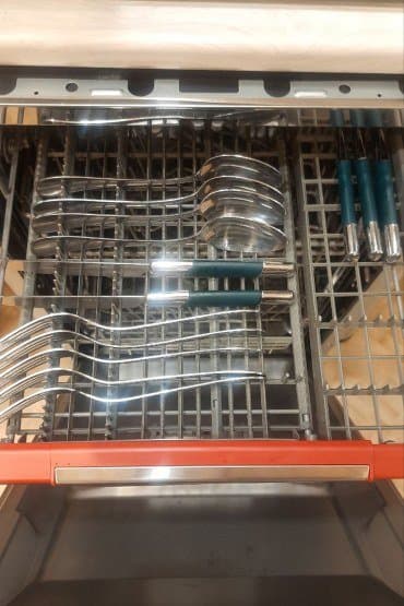 Для этого теста выбрали программу «Стандартная». По окончании мойки на всех трех уровнях нас ждала сверкающая, скрипучая от чистоты совершенно сухая посуда. Совсем незначительное количество влаги обнаружилось только на ложках.