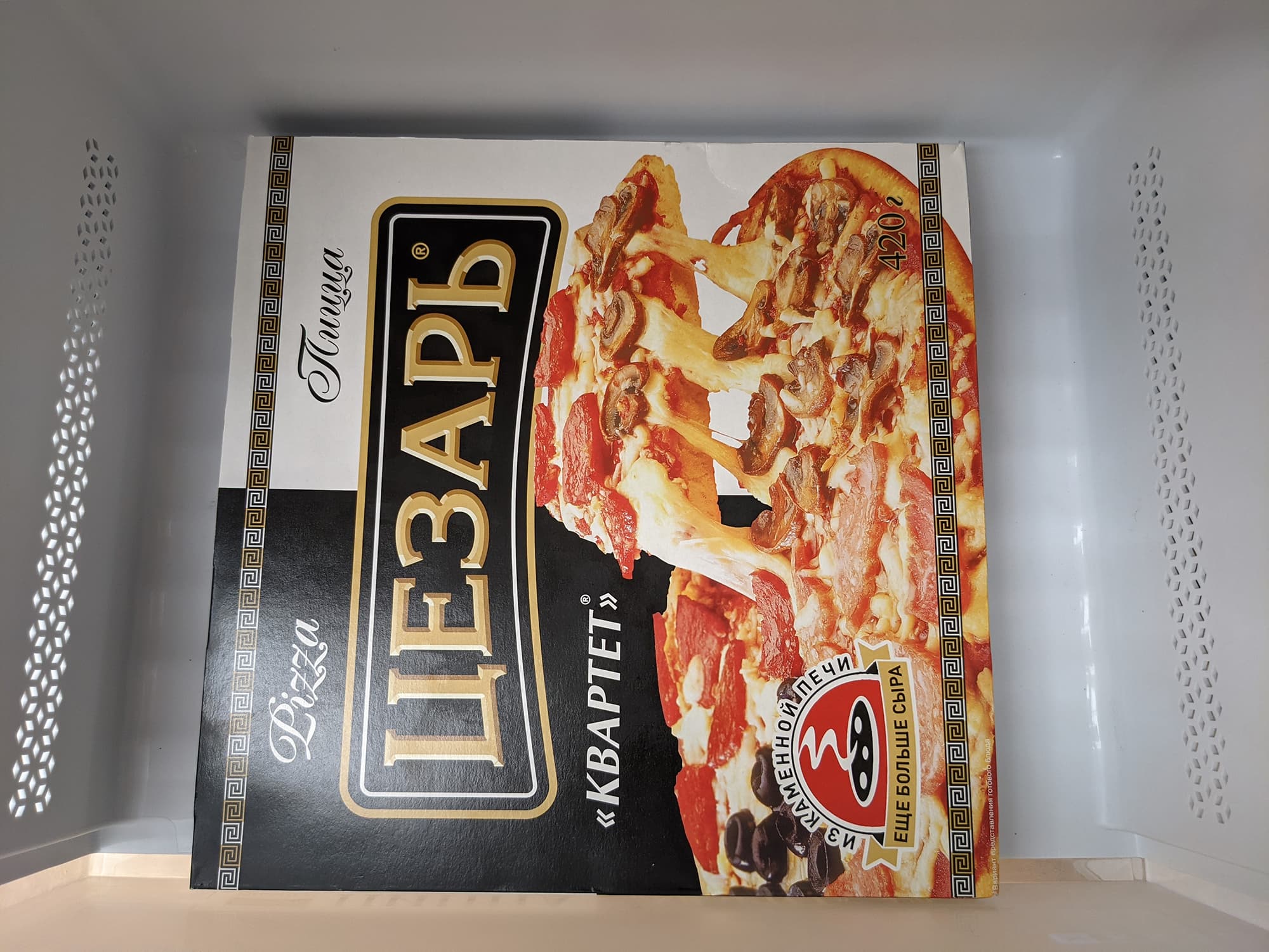 Коробка с замороженной пиццей вполне комфортно размещается в верхнем и среднем ящике, а вот нижний оказывается для нее маловат.