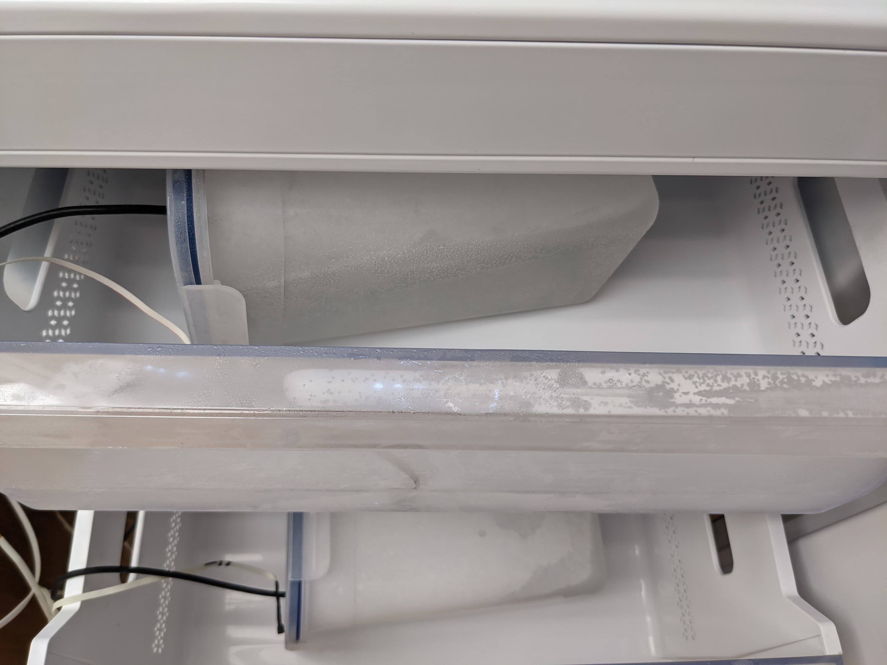 Чтобы проверить, как работает режим FastFreeze, мы поместили контейнеры с водяным балластом чуть ниже комнатной температуры в морозилку предварительно охлажденного холодильника и установили в ней температуру −22 °C. Затем включили функцию быстрой заморозки.