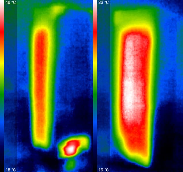 Решетки теплообменника у Lex RFS 204 NF Black скрыты за боковыми стенками. Они заметно нагреваются при работе — это особенно хорошо видно на фотографиях, сделанных с помощью тепловизора.