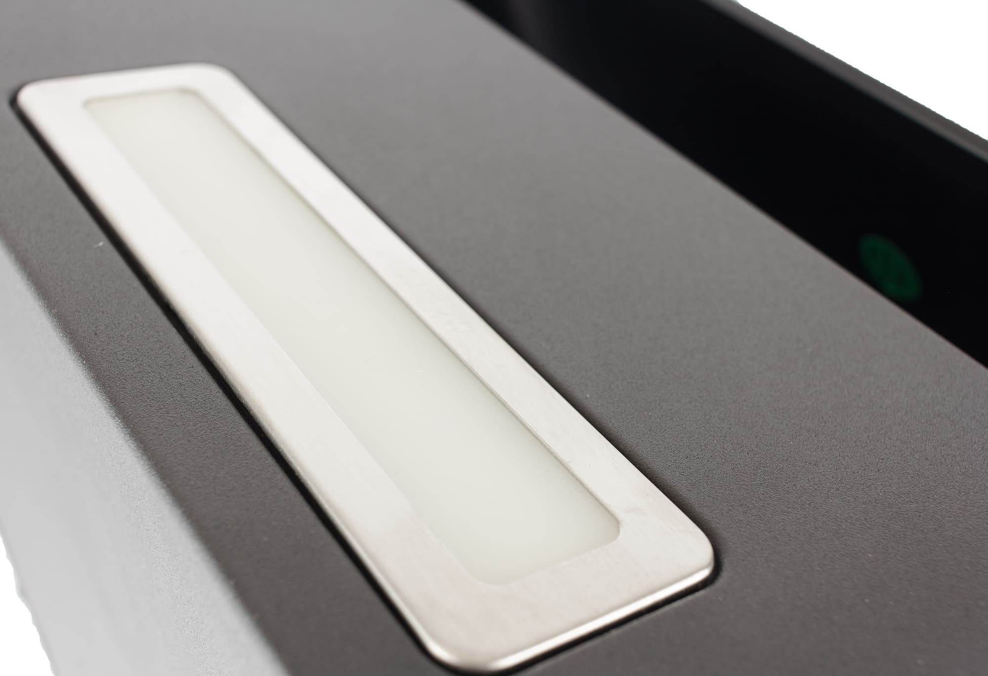 Светодиодная лампа, обрамленная декоративной серебристой рамкой, располагается на нижней панели прибора. Она несъемная: в случае поломки ее поменяют в сервис-центре. Свет у LED-источника яркий, ближе к холодному спектру.