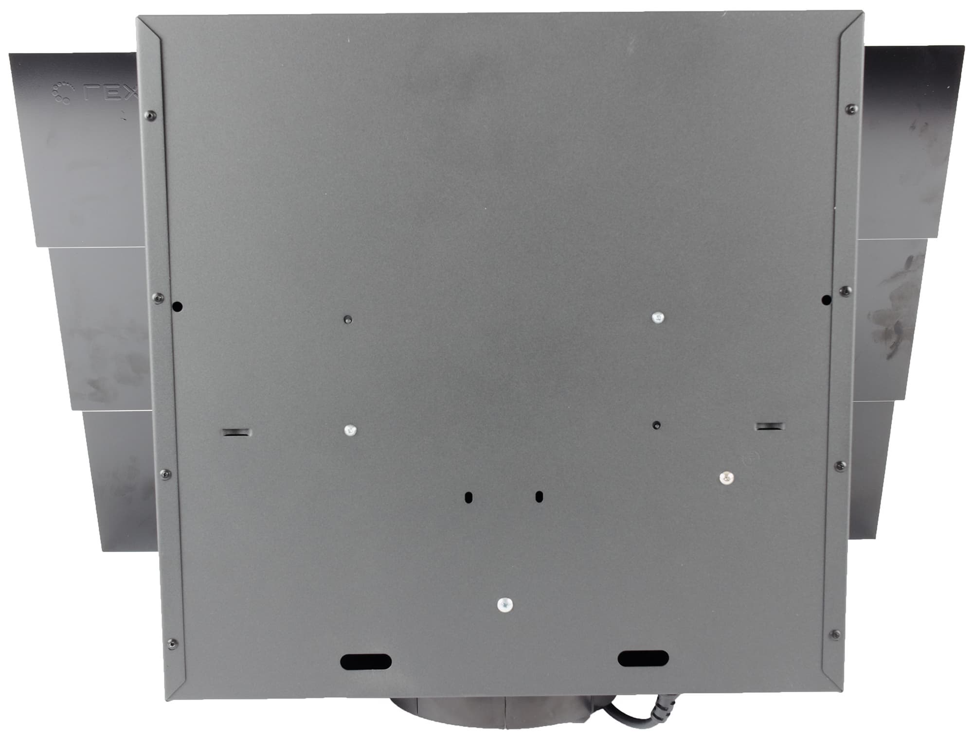 Задняя стенка вытяжки гладкая, с отверстиями для кронштейнов, также входящих в комплект.
