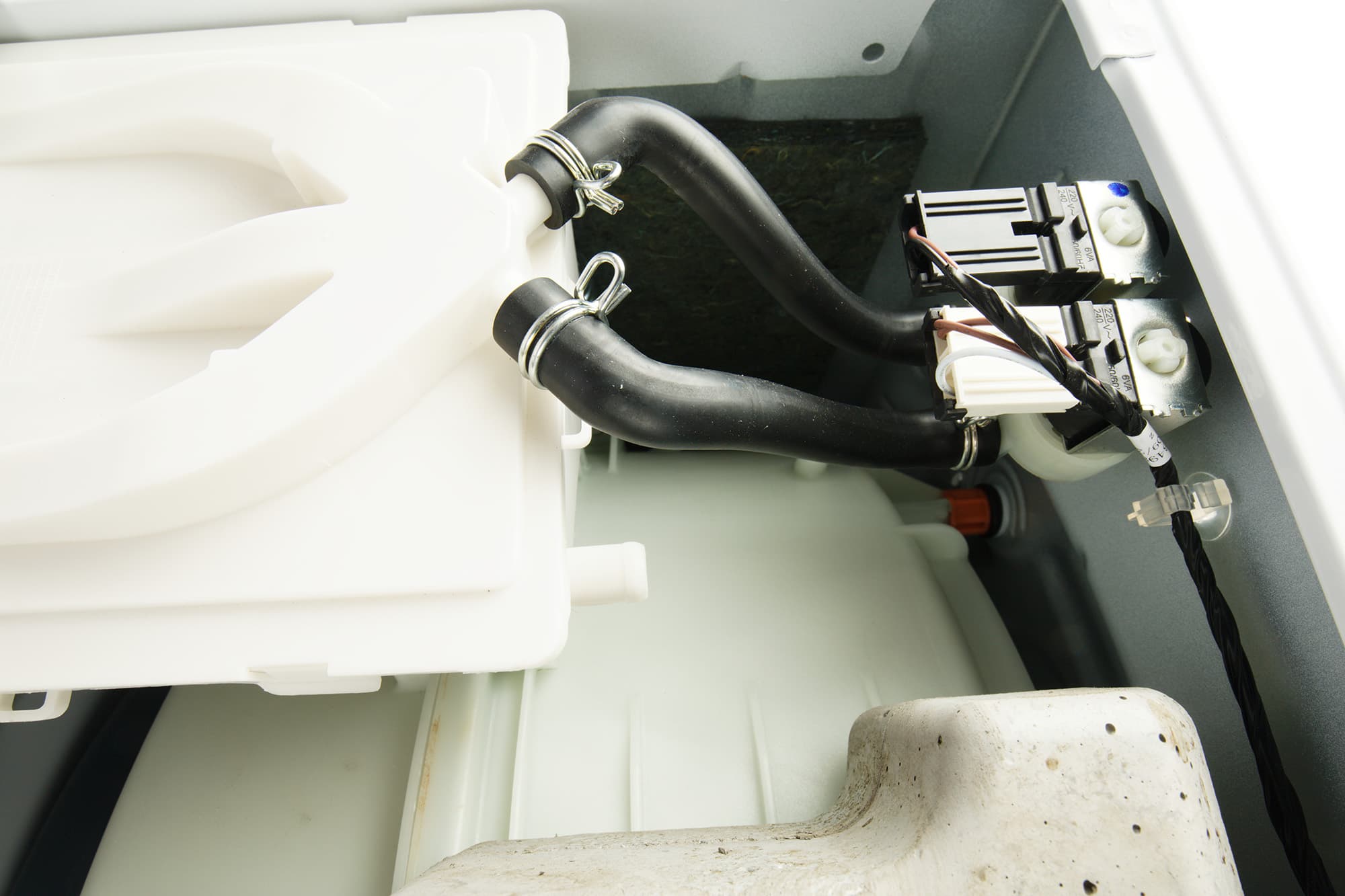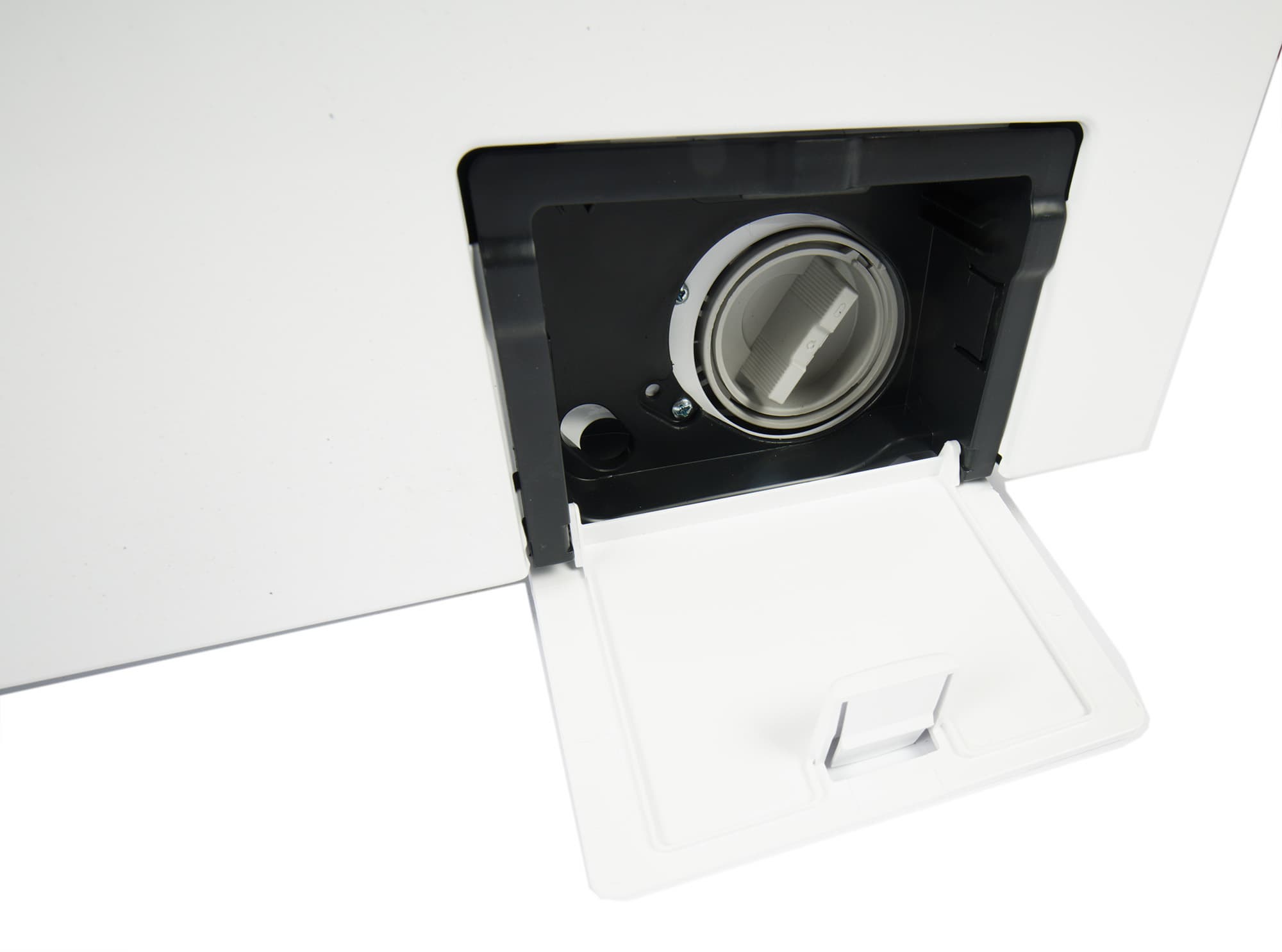 Под прямоугольной крышкой в нижней части панели находится пробка выпускного фильтра. Люк удерживается пластиковой защелкой и открывается без труда.