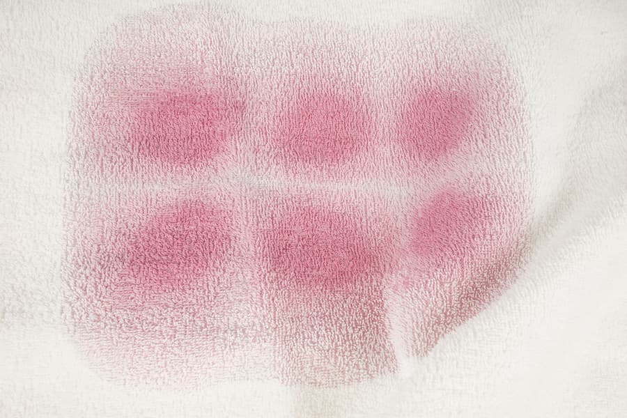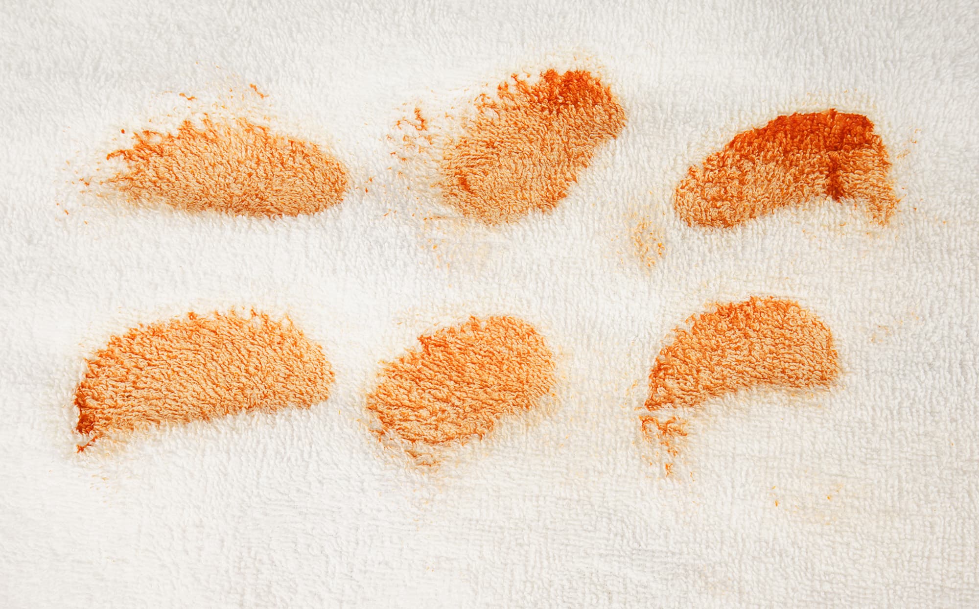 Комплект из пяти полотенец мы изгваздали красным вином, соевым соусом, кетчупом, кровью и какао (на каждом полотенце свой вид грязи). Затем высушили при комнатной температуре в течение суток и загрузили тестовую стирку.