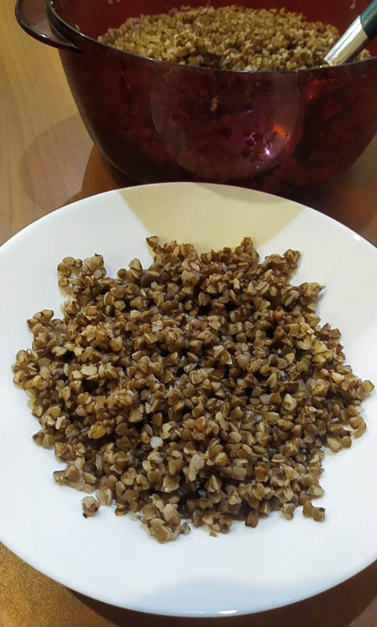 Гречка приготовилась полностью, ее даже можно с минимальной натяжкой назвать рассыпчатой.