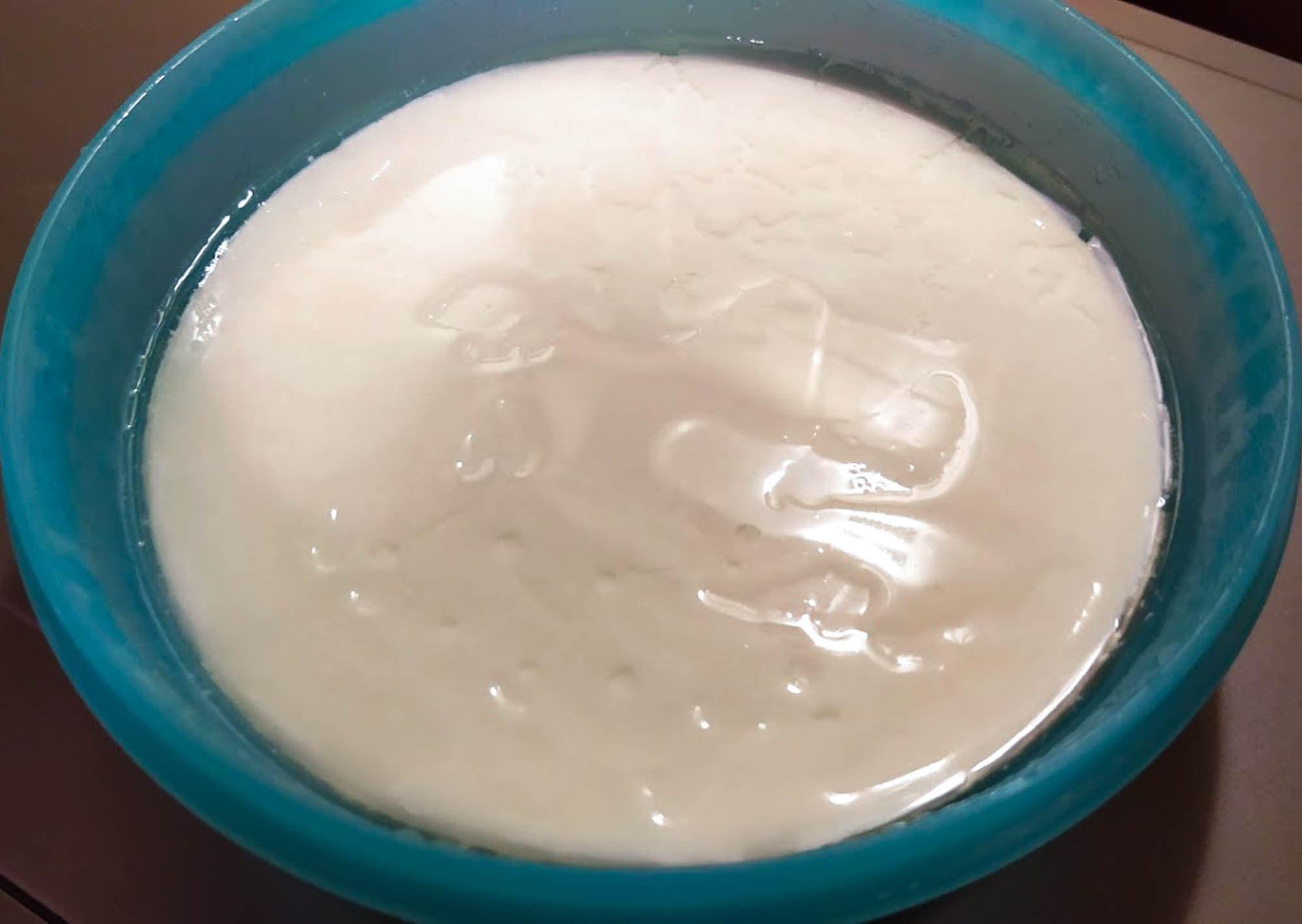 Мы перемешали содержимое емкости и отправили ее в холодильник на ночь. Утром стали готовить завтрак. Йогурт оказался комковатым.