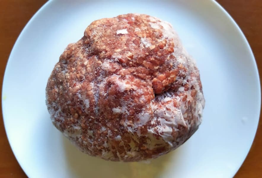 По окончании программы мы подождали пять минут, чтобы температура внутри куска стабилизировалась, и открыли прибор. Наш мясной ком не потек и не потерял форму, мы даже подумали, что фарш не разморозился. Но мы ошиблись: после удаления оттаявших частей перед нами оказался маленький твердый кусочек на 100 г. Отправили его дальше размораживаться, на этот раз прибор отмерил 1 минуту 48 секунд.