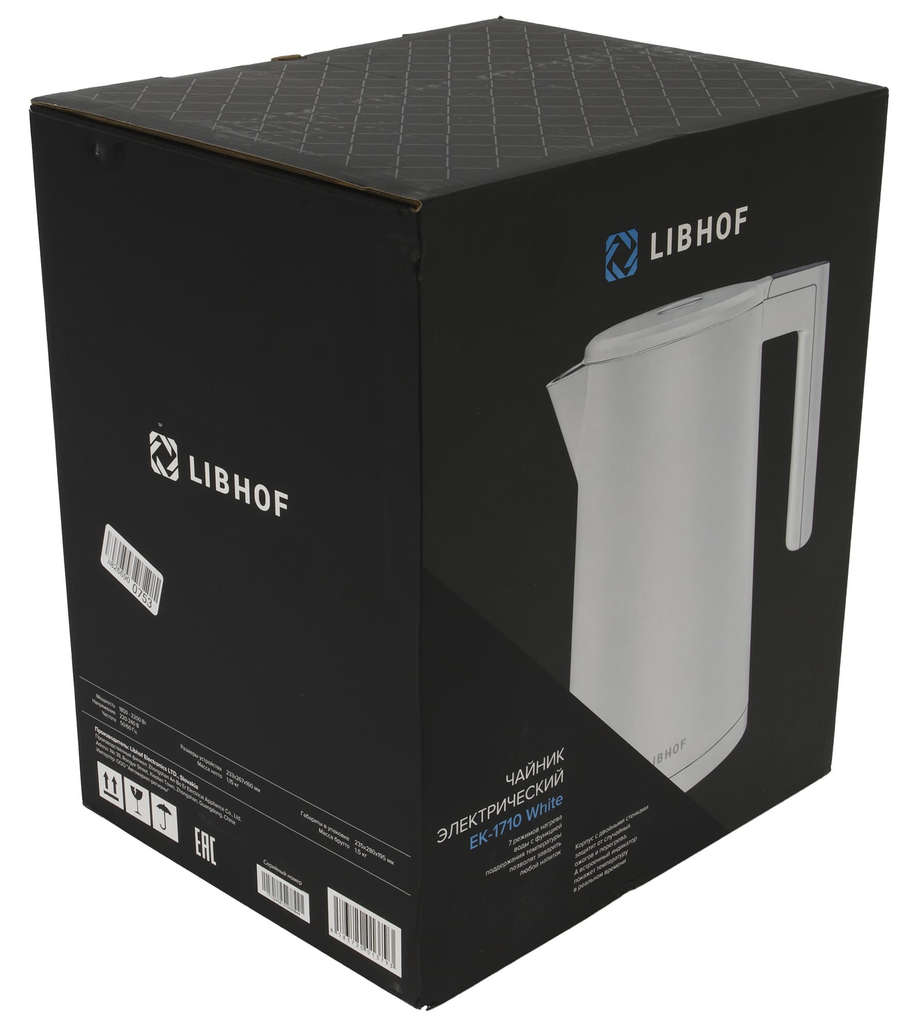 Электрочайник Libhof EK-1710 — красивый и функциональный прибор. Он может и вскипятить воду, и нагреть ее до заданной температуры, и поддерживать температуру воды в течение часа.
