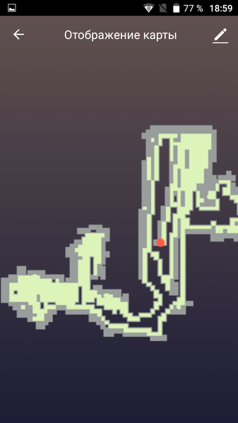 На карте толстыми серыми линиями обозначены обнаруженные роботом препятствия. Потом навигация сбилась не только по дистанциям, но на большой угол. В результате робот стал рисовать что-то совсем абстрактное: