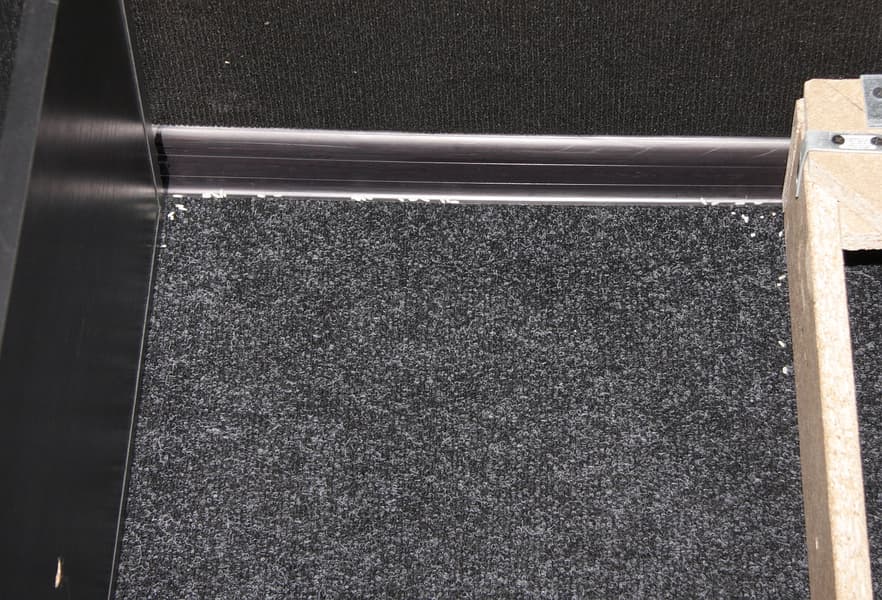 Сдвиг бампера вызывает срабатывание механических датчиков препятствий. Расстояние от пола до нижней точки бампера равно 16 мм, значит, на ступеньку такой высоты робот потенциально может заехать. Для защиты мебели спереди на бампер в нижней его части наклеена полоса из резины средней жесткости. Выше на бампере за окошком из тонированного пластика находятся ИК-датчики обнаружения препятствий, базовой станции и, возможно, приемник команд с пульта ДУ. ИК-приемник также расположен, видимо, под верхней панелью в передней части.