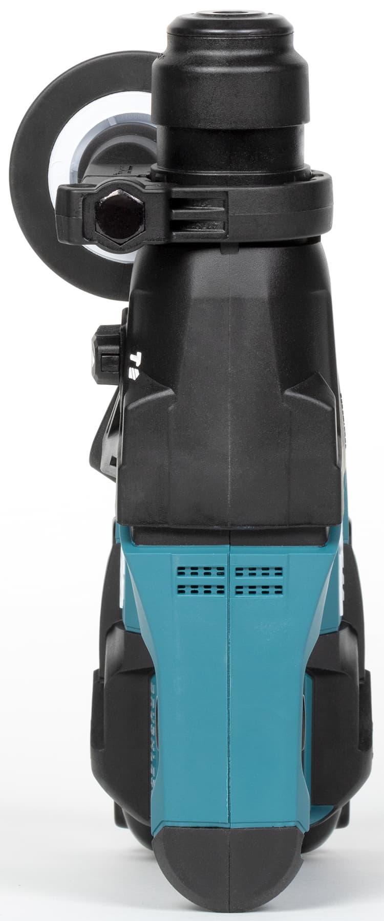 Рассматриваемый перфоратор — одна из самых простых моделей в линейке Makita. Он снабжен бесщеточным двигателем с высоким КПД, но мощность его не настолько велика, чтобы дополнять перфоратор антивибрационной системой. Такие системы устанавливаются только на мощные модели перфораторов. Они представляют собой амортизирующее устройство — противовес с пружиной, который принимает на себя отдачу. Принцип его работы тот же, что у компенсационных противовесов в небоскребах.
