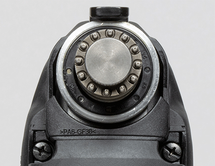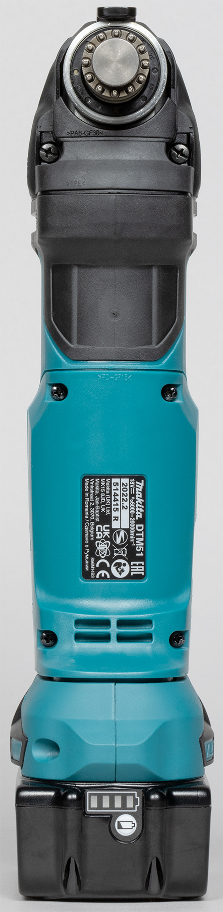 Начать хотелось бы с системы крепления и подходящих к ней насадок. Эта система называется OIS (Oscillating Interface System) и представляет собой 12-точечную площадку, которая позволяет установить насадку не только вдоль оси корпуса, но и под углом в диапазоне от 0 до 360 градусов. Это сделано для максимально комфортной работы в труднодоступных местах.