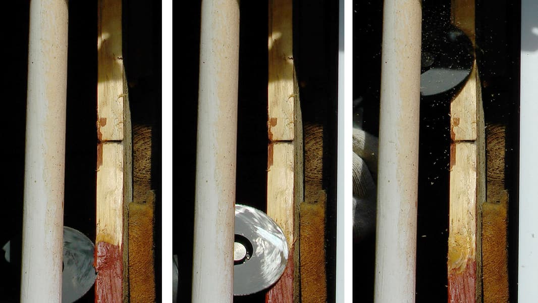Отметим важную деталь: при вертикальном врезании в направлении сверху вниз, надо помнить о том, что образующиеся стружка и пыль остаются в создаваемом углублении. Отходам попросту некуда деться, вверх они вылетают крайне неохотно, спросите Эйнштейна. Оставаясь в месте обработки, пыль способствует еще большему нагреву полотна и катастрофически снижает эффективность работы. А если вы собрались пилить СССР-овскую лакированную ДСП или внутри древесины прячется смолистый сучок... Нет, пропилить такой материал реноватором лучше и не пытаться.
