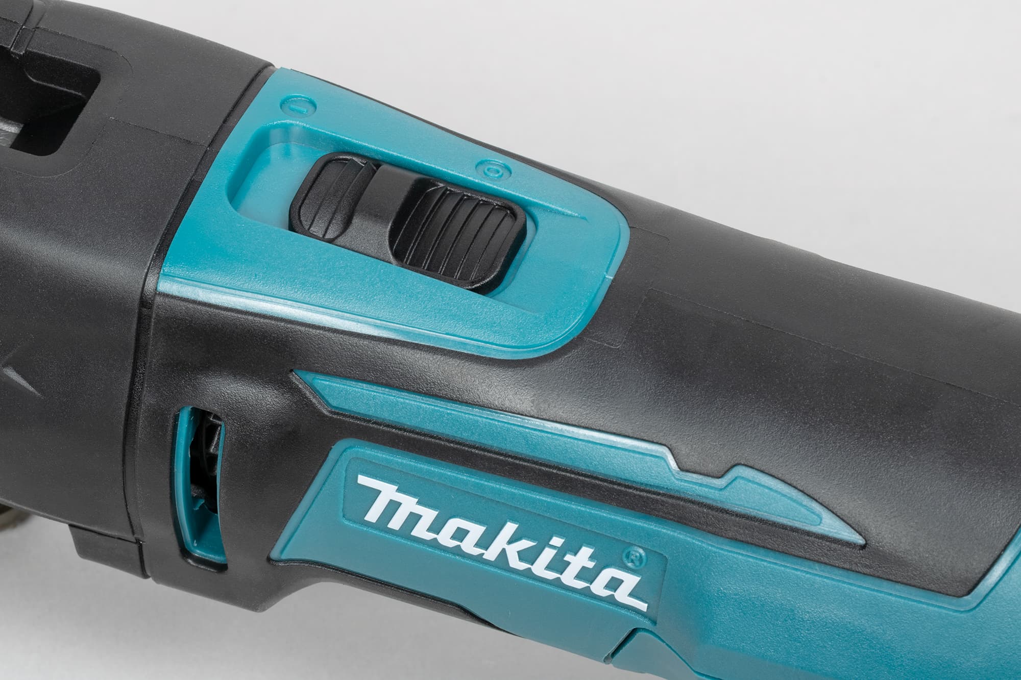 Да, выглядит точь-в-точь как «болгарка». Такой же продолговатый корпус и верхнее расположение основного органа (шпинделя) — сбоку и с краю. Даже ползунковый переключатель, запускающий двигатель, напоминает «болгарочный».