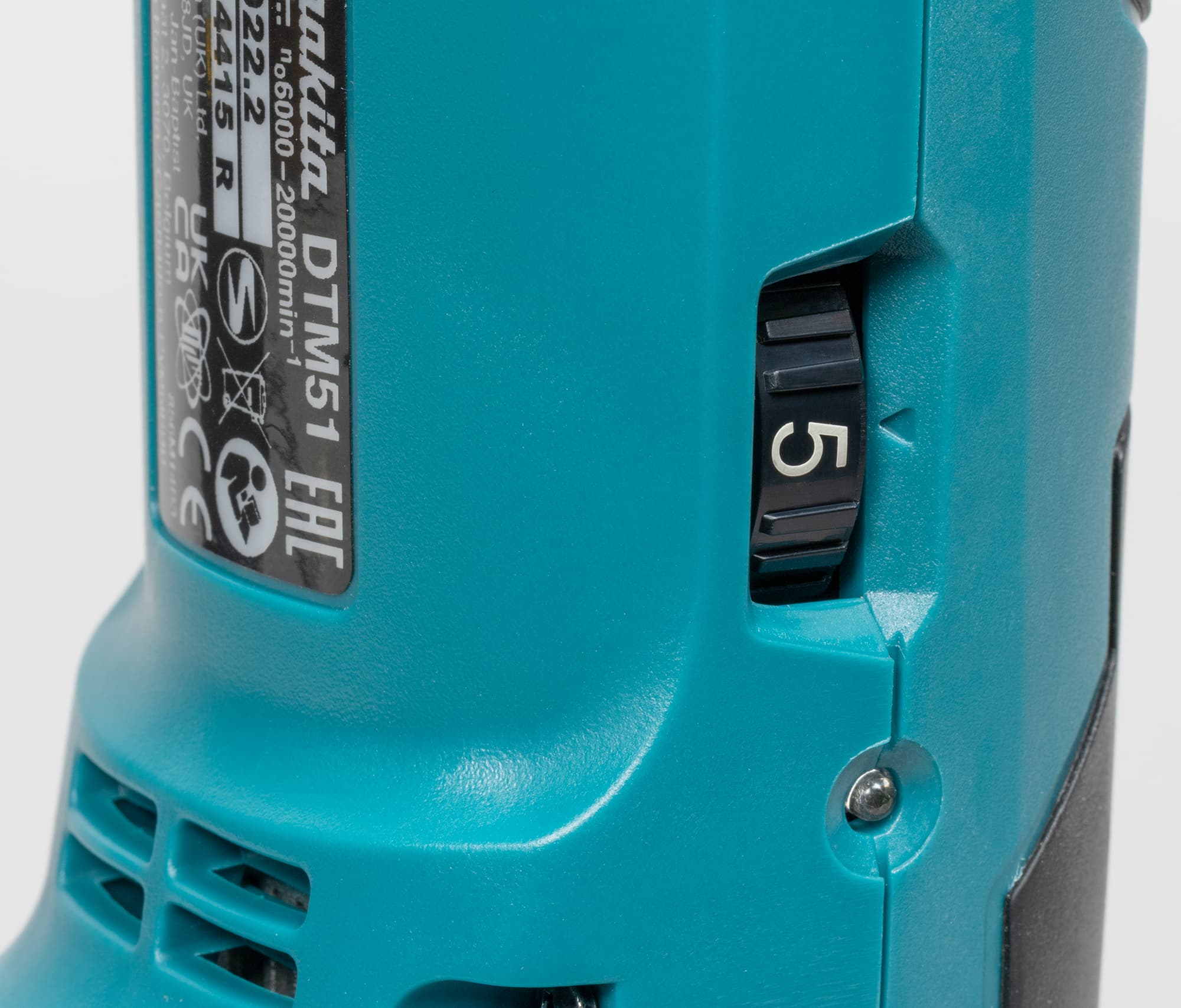 Вот только регулировку скорости на угловой шлифовальной машине редко увидишь. А здесь — пожалуйста. Стандартное колесико с цифрами от 1 до 6 находится сбоку, ближе к аккумулятору.