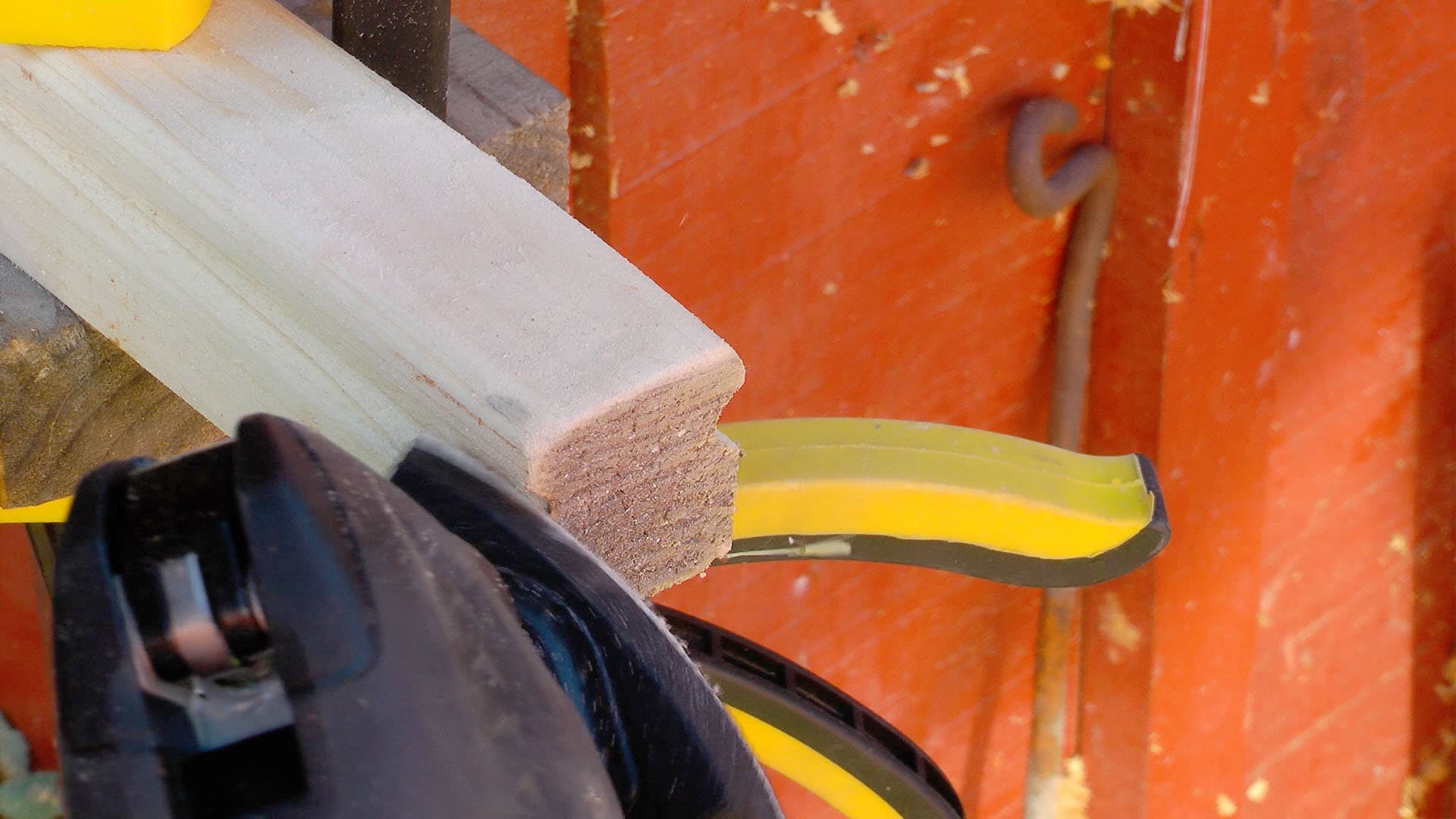Тут-то и пригодился наш реноватор. Благодаря тому, что насадка-пилка имеет ступенчатый профиль, обработать этот торец доски оказалось легче легкого. Теперь можно и зашлифовать, а потом покрасить.