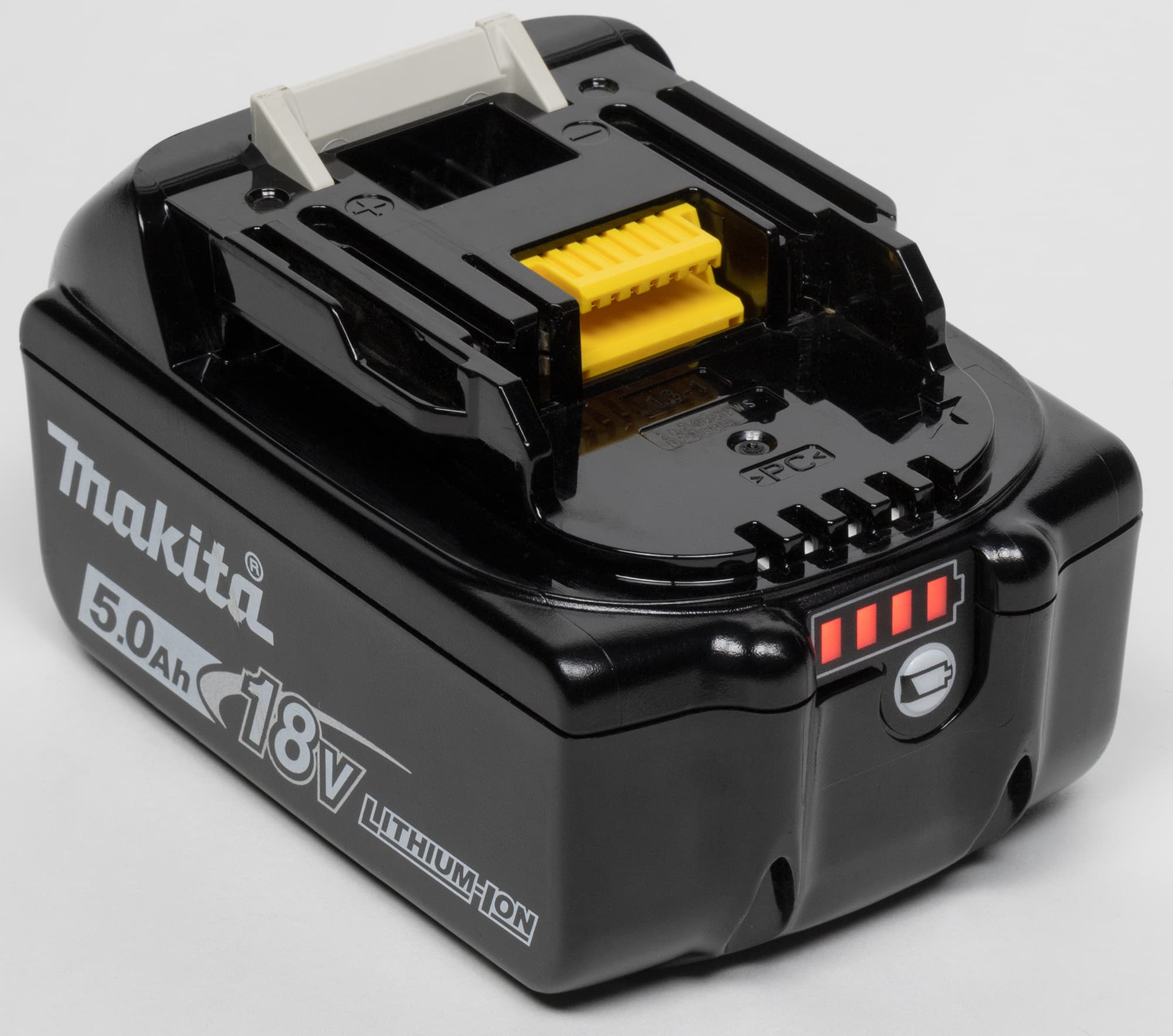 Рассматриваемый инструмент можно запитать любым 18-вольтовым аккумулятором серии Makita BL18xx. Такие аккумуляторы оснащены индикаторами оставшегося заряда.