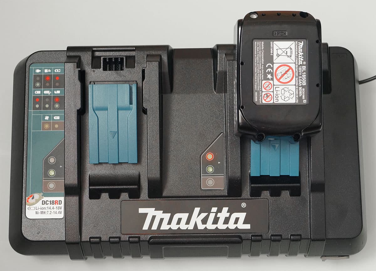 Время зарядки 18-вольтового аккумулятора емкостью 3 А·ч составляет 27 минут, а более емкий аккумулятор 5 А·ч заряжается на 10 минут дольше.