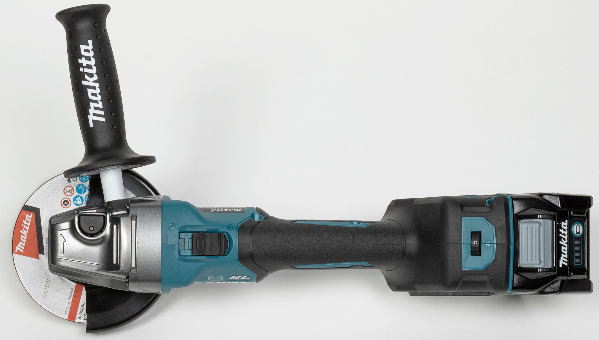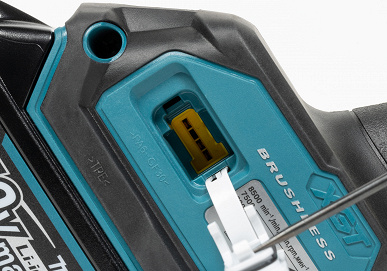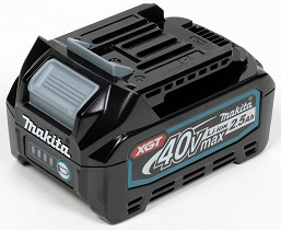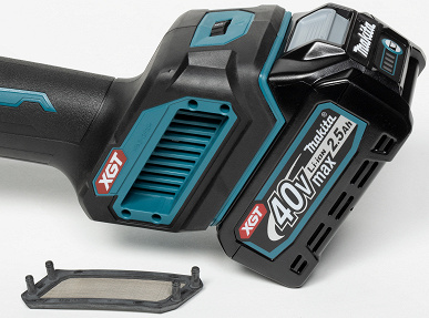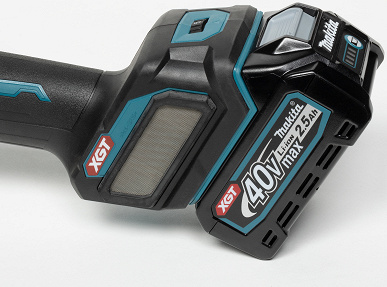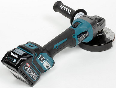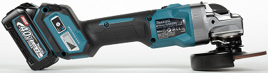 УШМ Makita GA023GZ питается от батарей Makita type с вольтажом 40 В. Производитель предлагает батареи разной емкости, от от 2 до 8 А·ч. Для тестирования болгарки была предоставлена батарея скромной емкости, 2,5 А·ч.