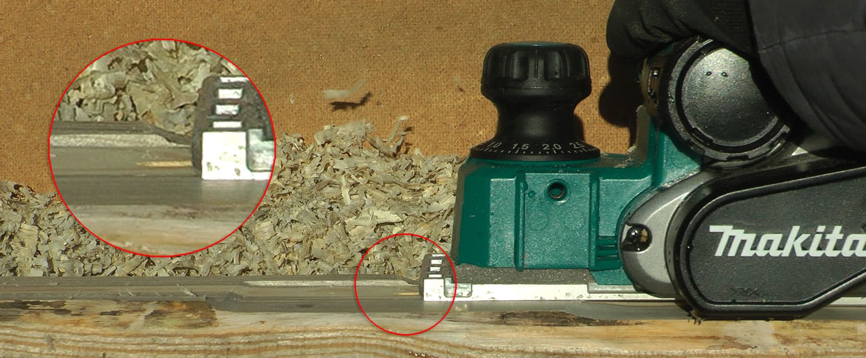 Как и любой аккумуляторный инструмент высокой мощности, рубанок не предназначен для масштабной деятельности. Даже самый емкий аккумулятор не даст достаточно энергии, чтобы выполнить сколько-нибудь серьезный объем работы. Назначение такого инструмента — быстрая обработка деревянных поверхностей в неподходящих условиях, без необходимости подготавливать рабочее место. В таких случаях самым важным оказывается фактор автономности, независимости от сетевого питания.